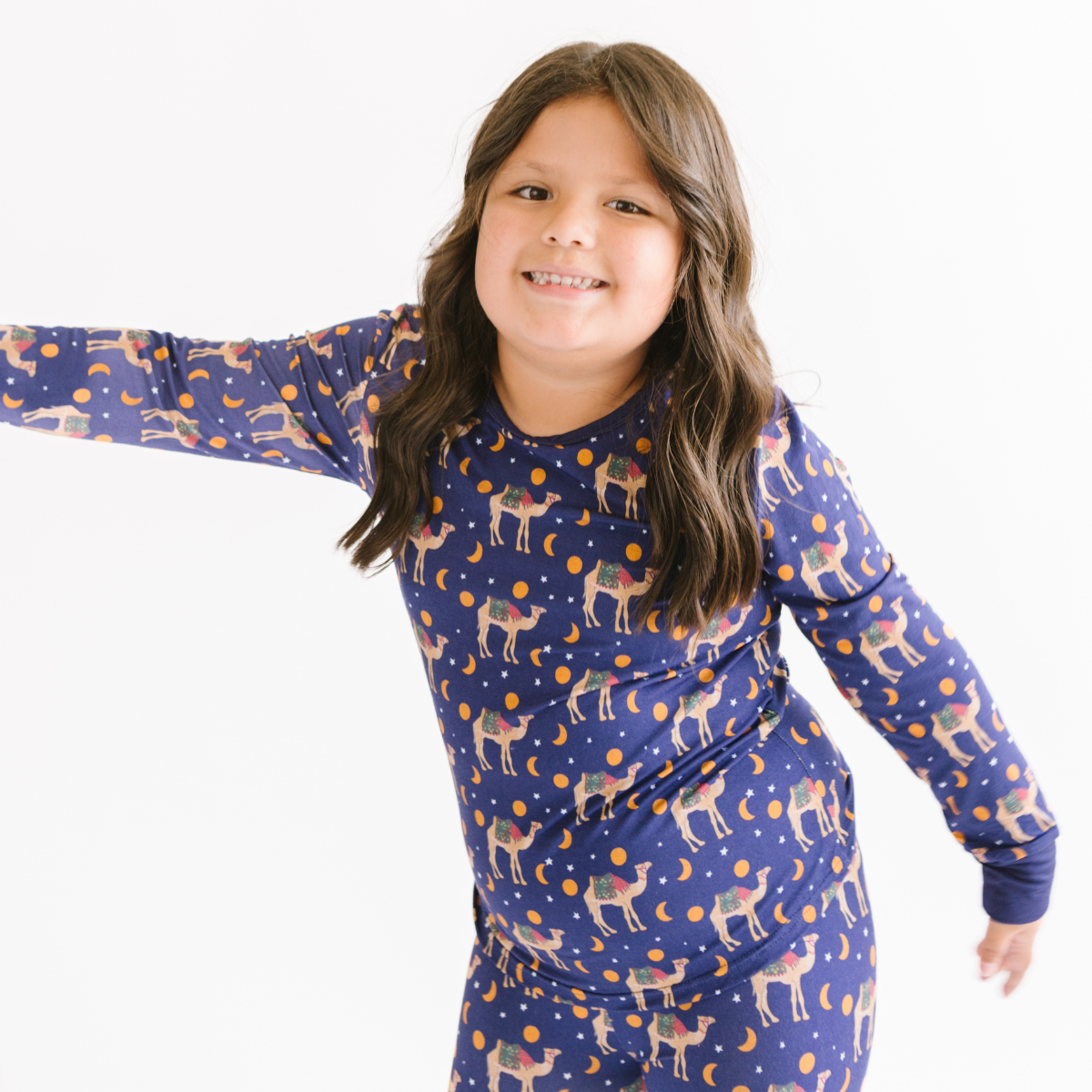 Snag a set of our luxuriously soft pajamas and watch as your little one enjoys a restful night's sleep like a bear in hibernation! Crafted from breathable, silky-smooth bamboo viscose with the perfect touch of stretch, these pajamas are bound to become your child's top pick. Your kids will eagerly anticipate bedtime, eager to cuddle up with these charming camels, making it easier than ever for them to slip on their sleep masks and drift off to dreamland!