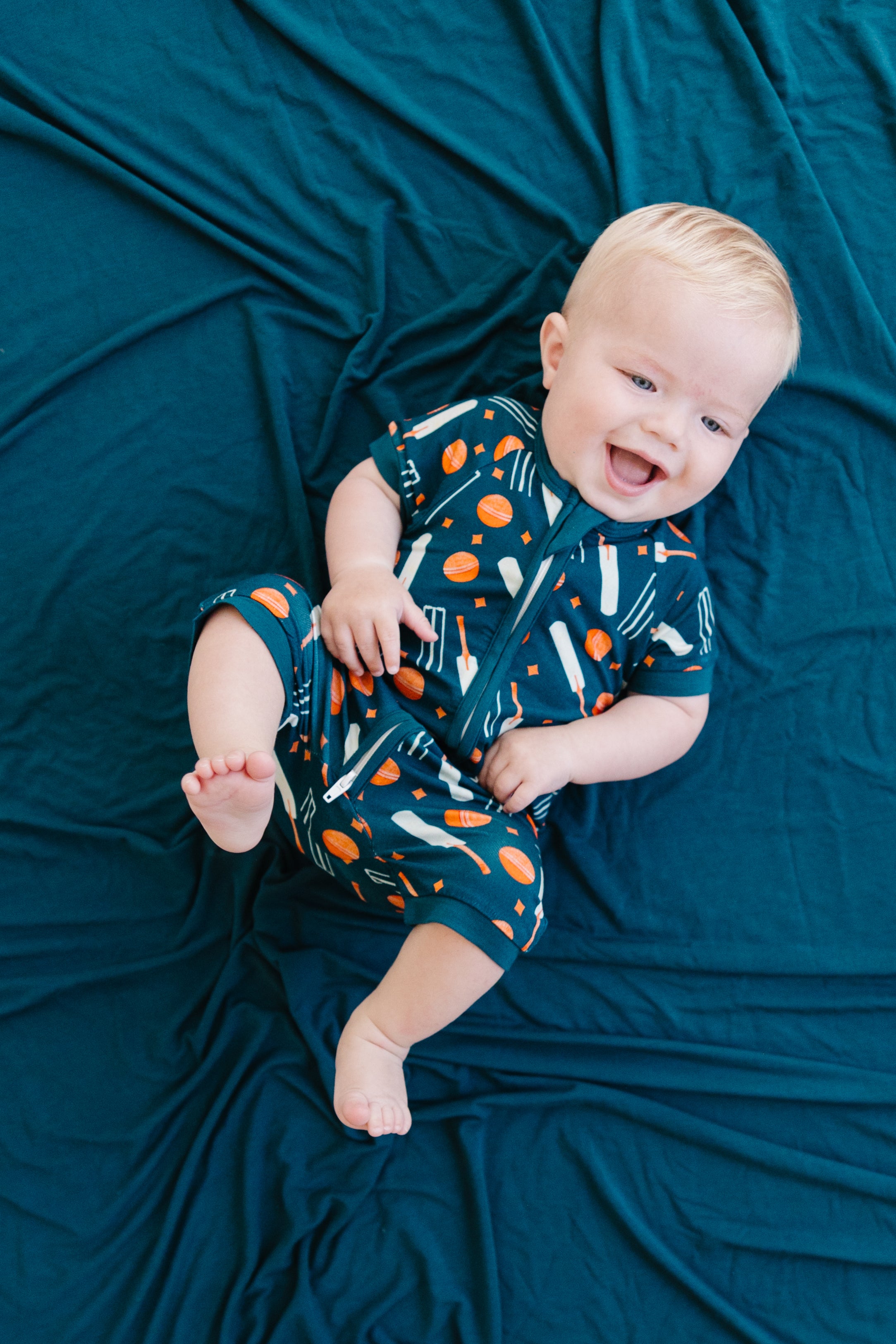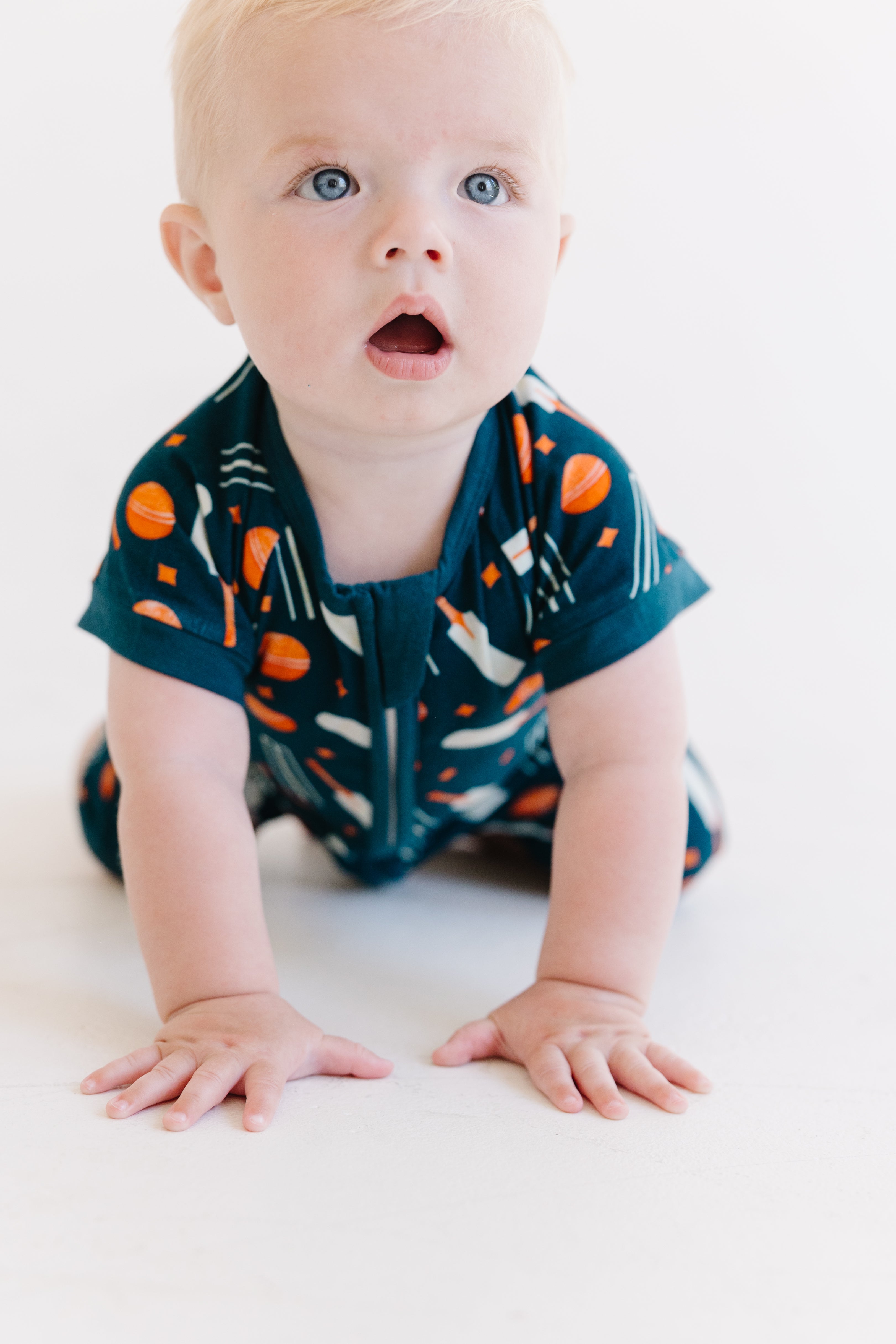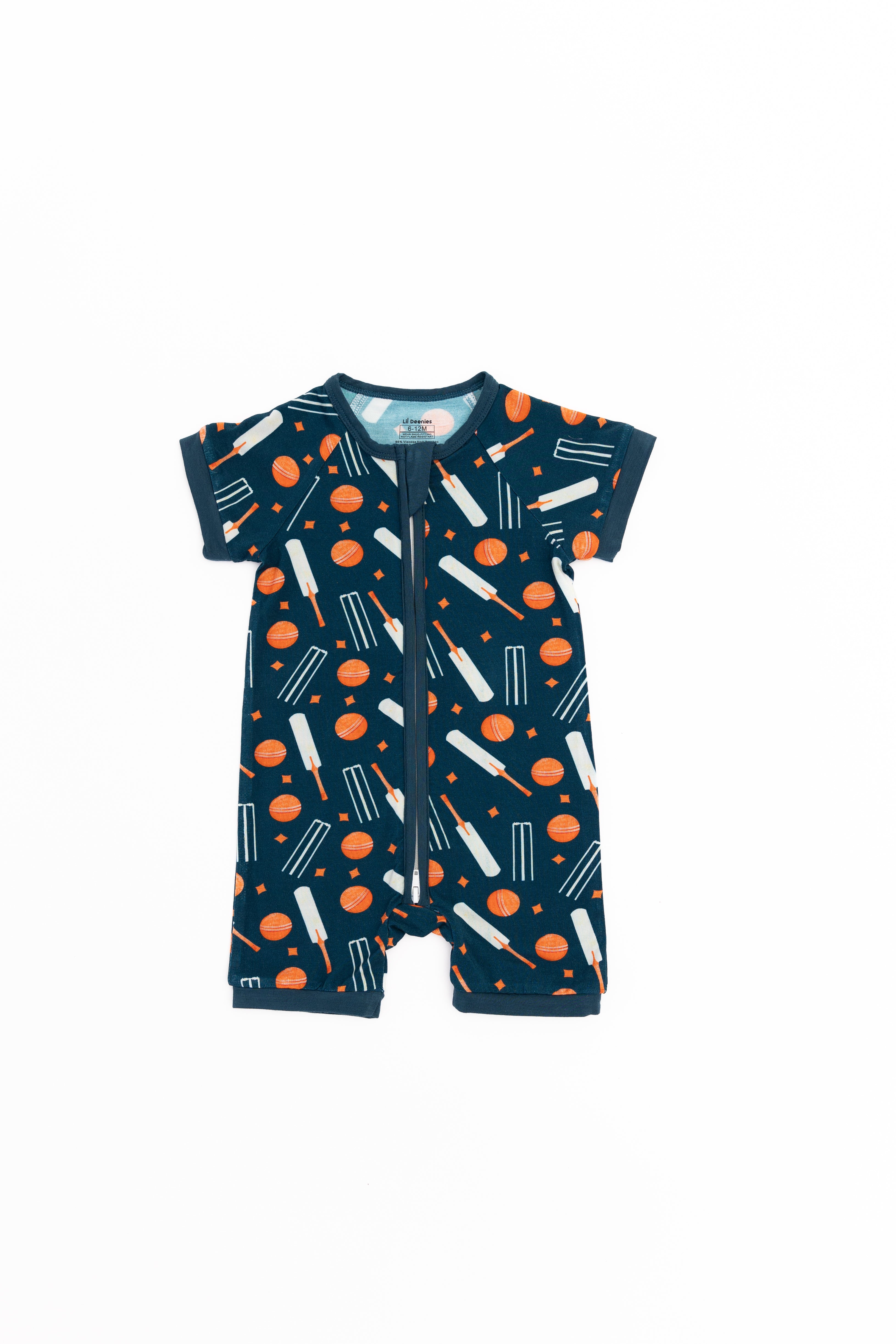 The cricket-inspired design adds a playful touch, making it perfect for everyday wear or special occasions. With its short sleeves , short pants, and convenient zippy closure, dressing your baby has never been easier!