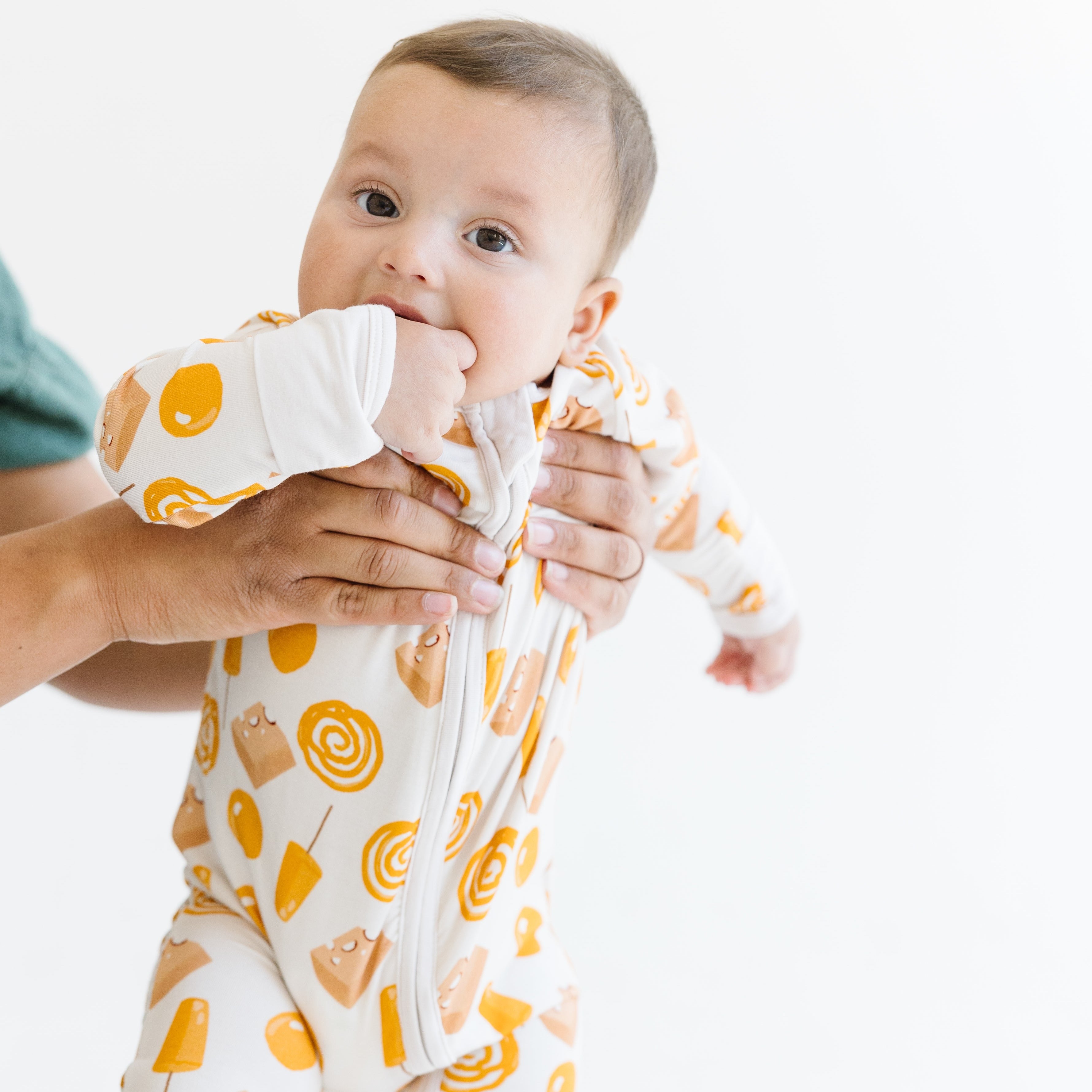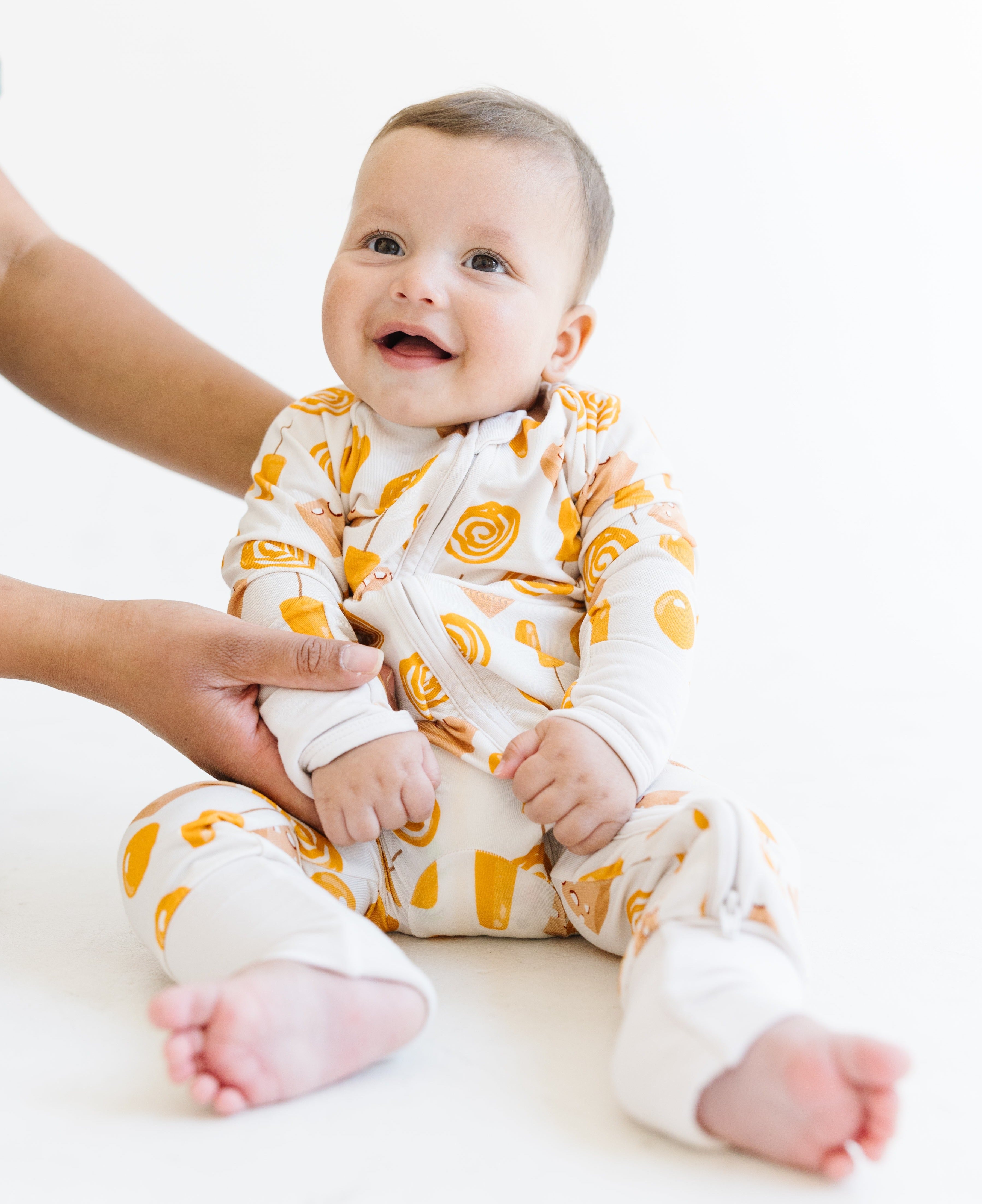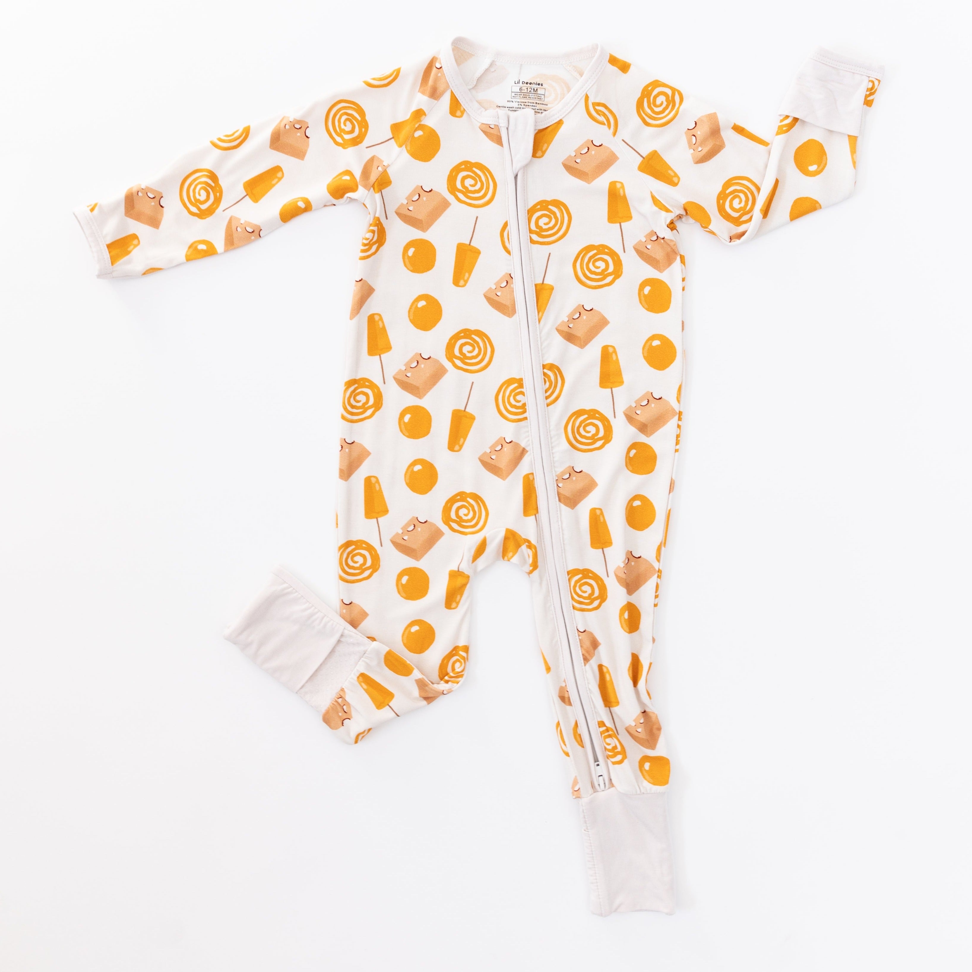 Crafted from premium bamboo fabric, this zippy offers unmatched softness and breathability, ensuring your child stays cozy and stylish. Adorned with a vibrant print featuring traditional Indian sweets, it adds a touch of cultural flair to your child's wardrobe. The convenient zip closure makes dressing and diaper changes a breeze, perfect for everyday wear and special occasions.