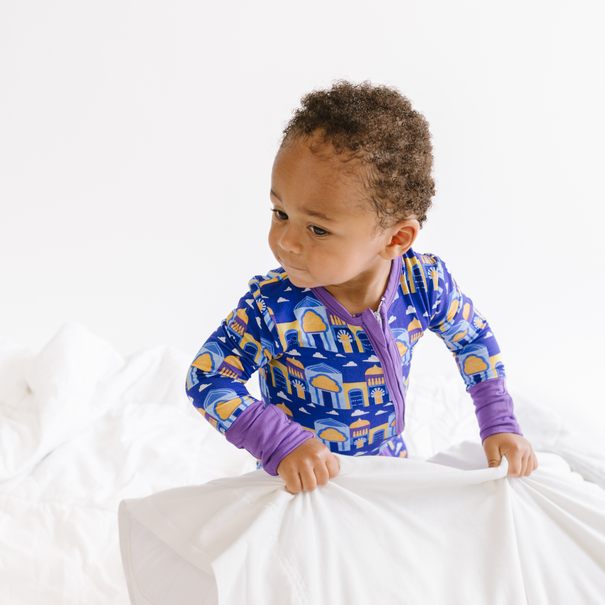 Get this cute outfit for your little one to embrace the cozy charm of fall! Meticulously crafted with affection and an eye for detail, this charming Masjid inspired romper harmoniously blends vibrant colors with snug comfort, promising your baby's bedtime cuddles will brim with warmth and delight.