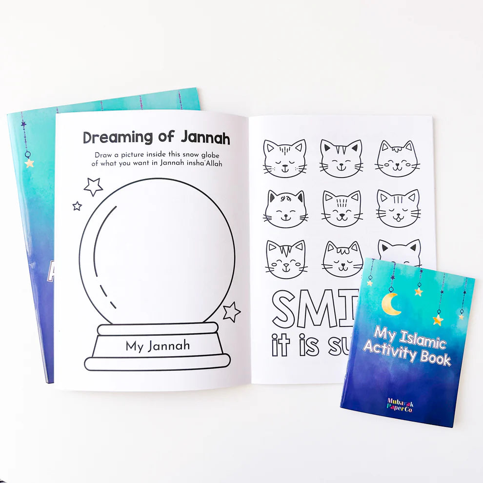 This New Coloring Book with light Islamic teachings is best for ages 3 - 7, or for anyone who enjoys coloring. Includes engaging graphics and activities like word search, mazes, gratitude and good deeds list. Perfect for any time of the year.