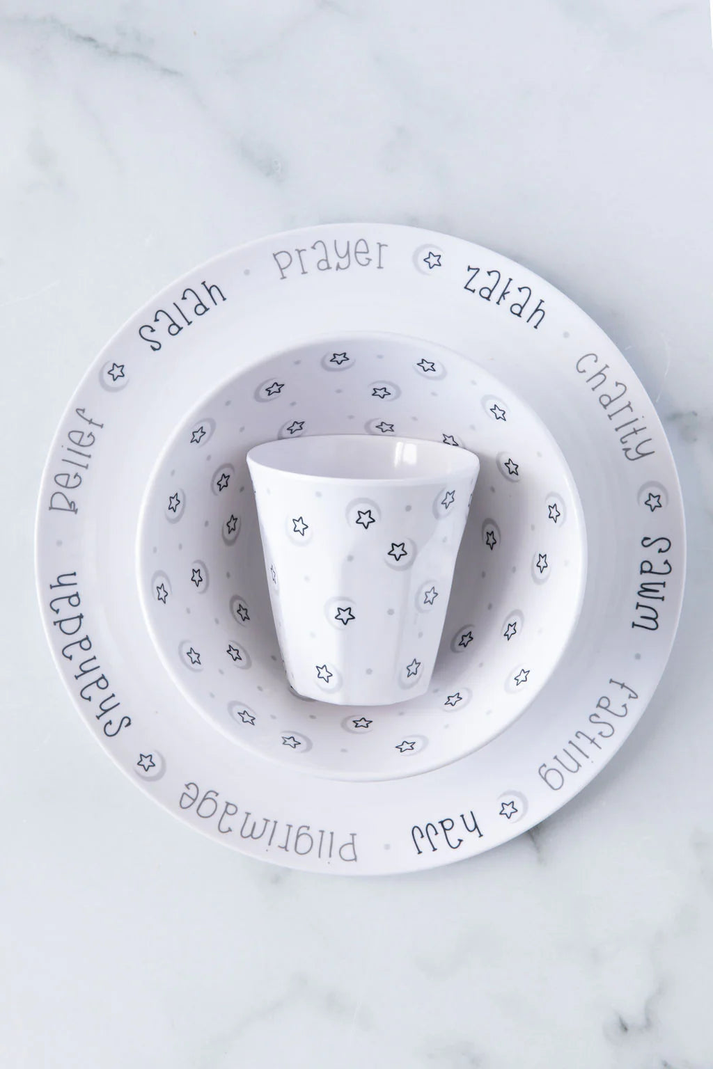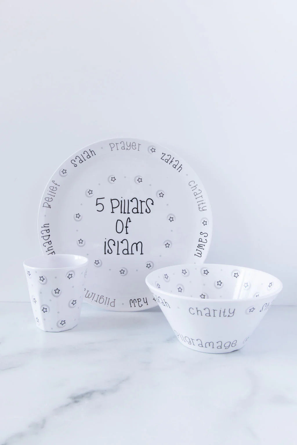 Pillars of Islam Tabletop gift set was created in hopes of children reading, learning, and remembering the foundation of our faith, while eating.