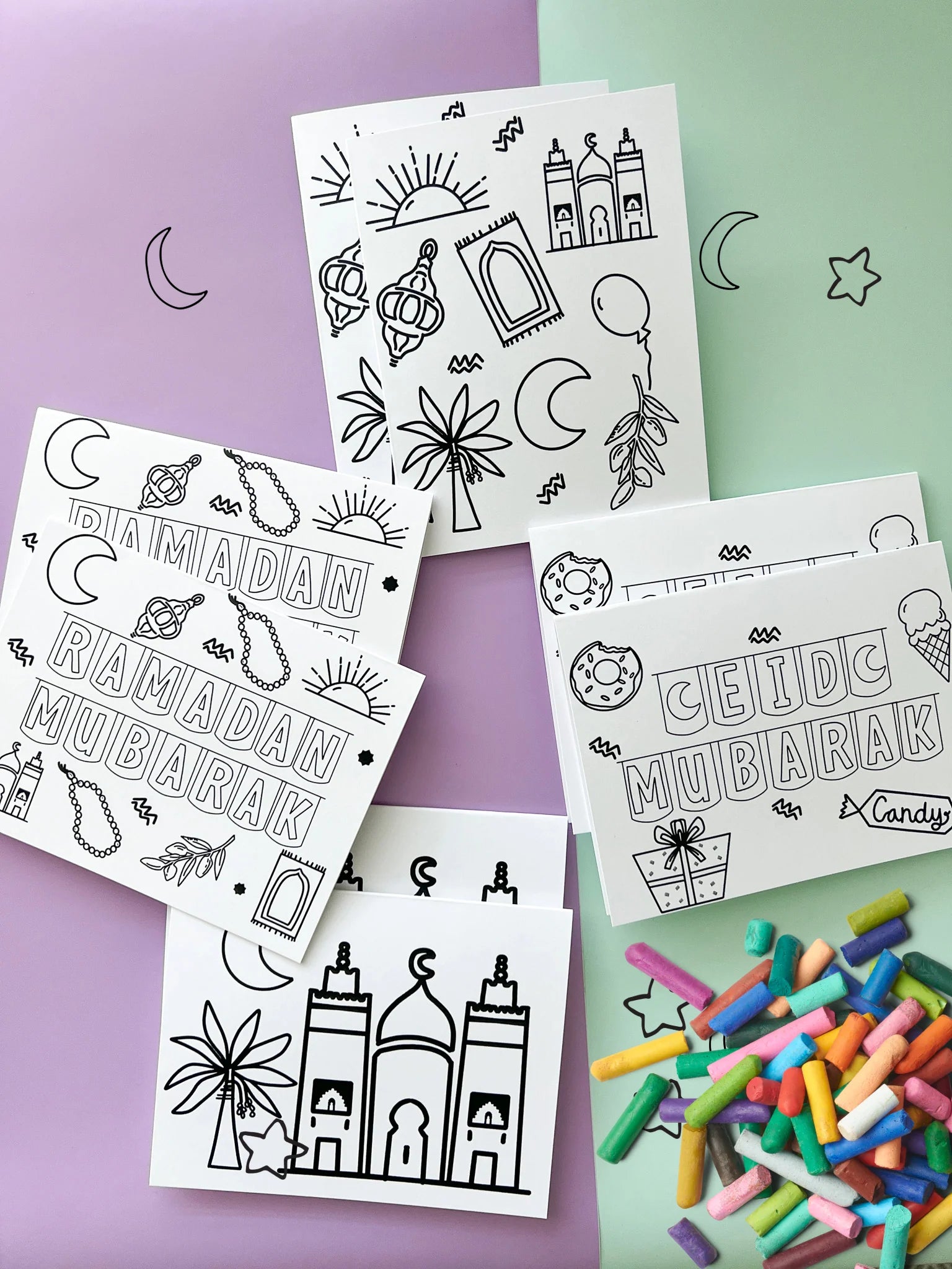 Ramadan & Eid Coloring Cards - Perfect for Kids!