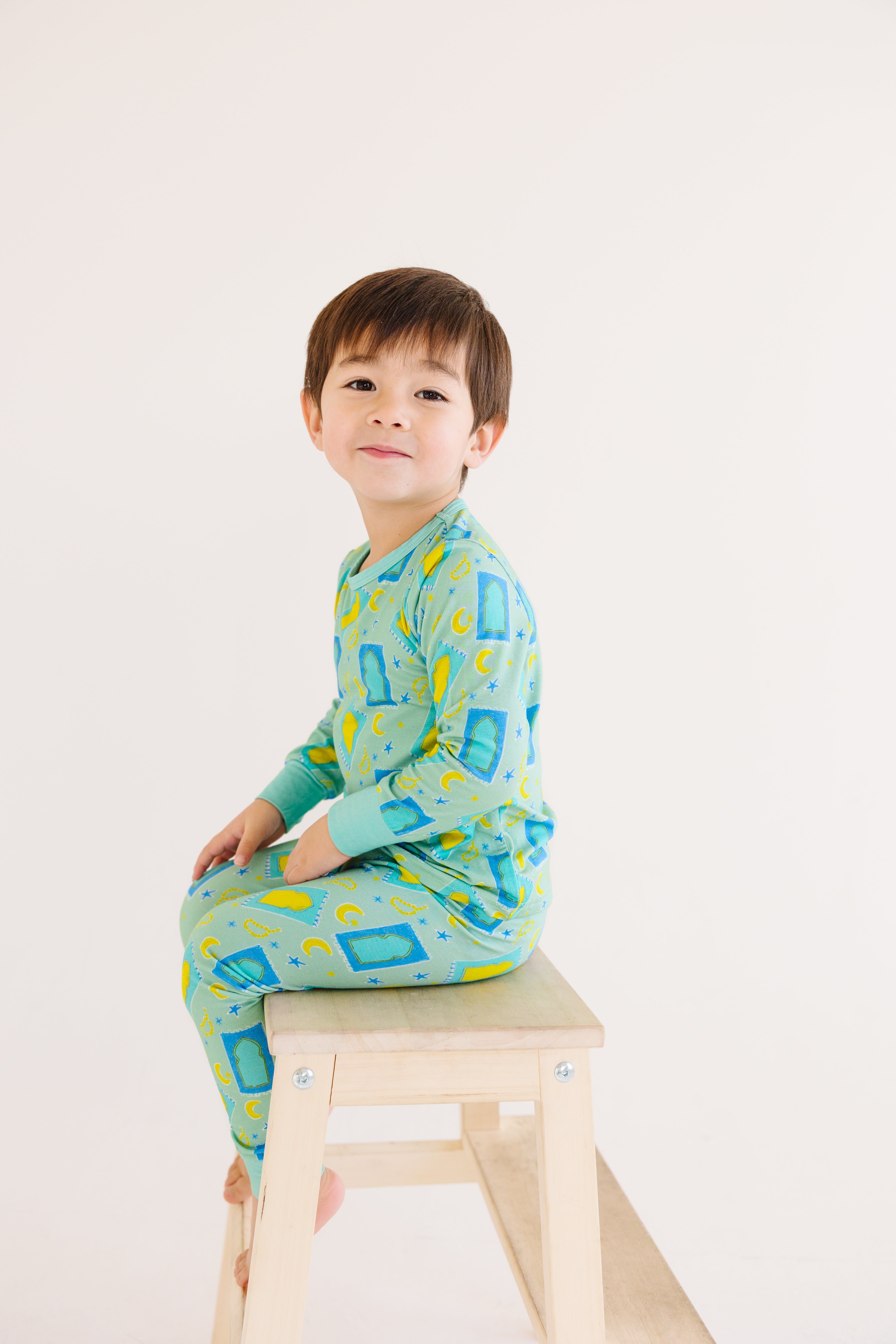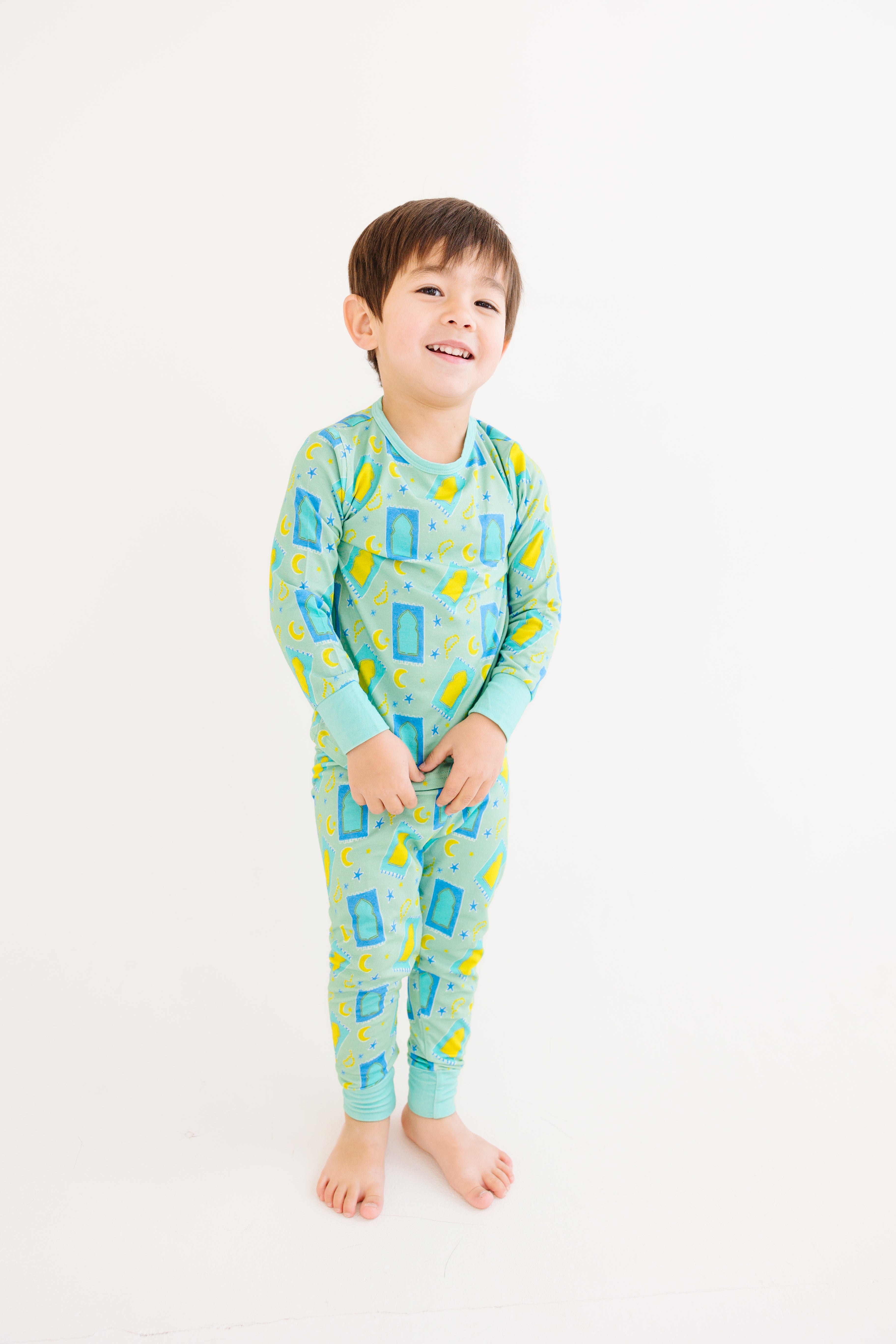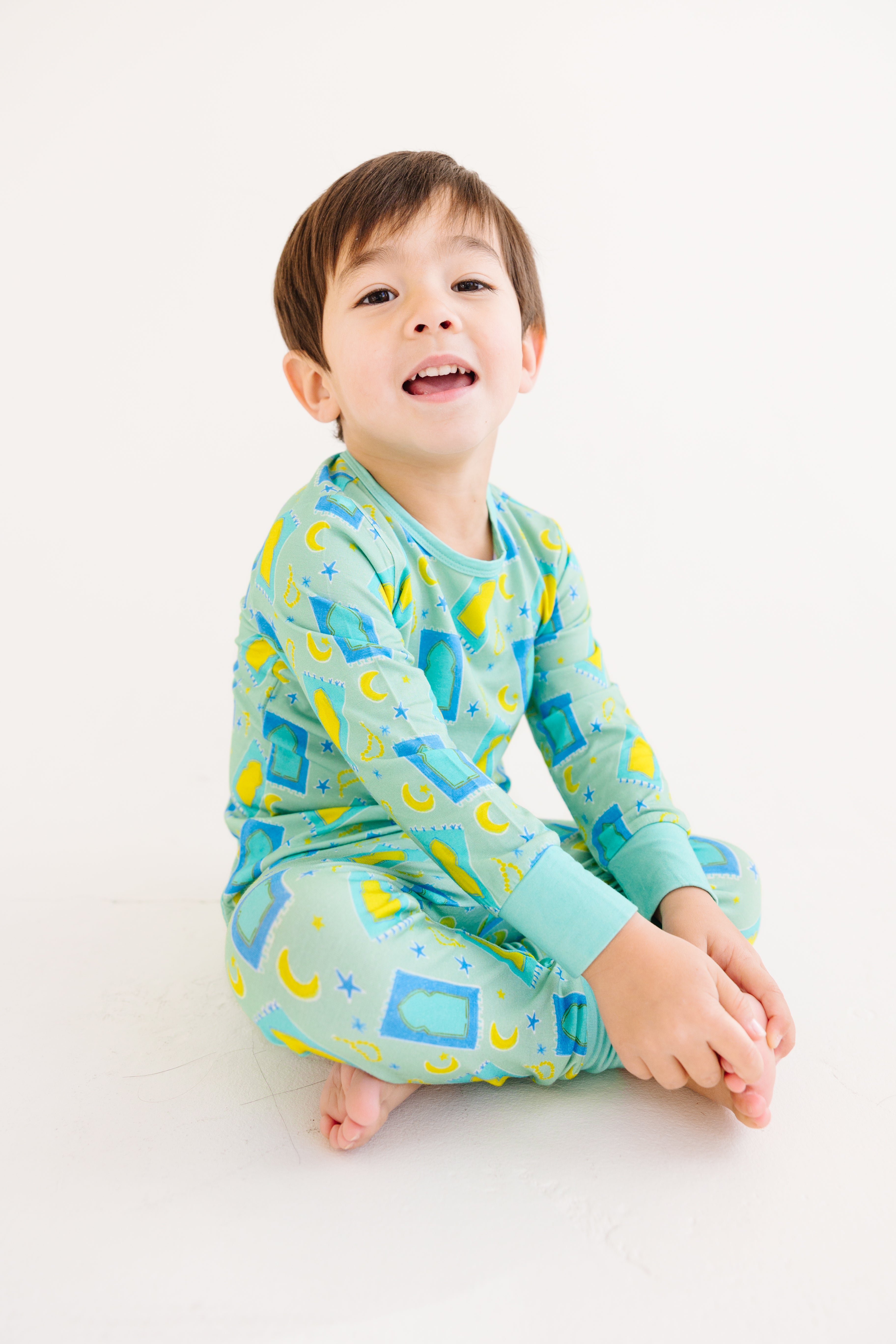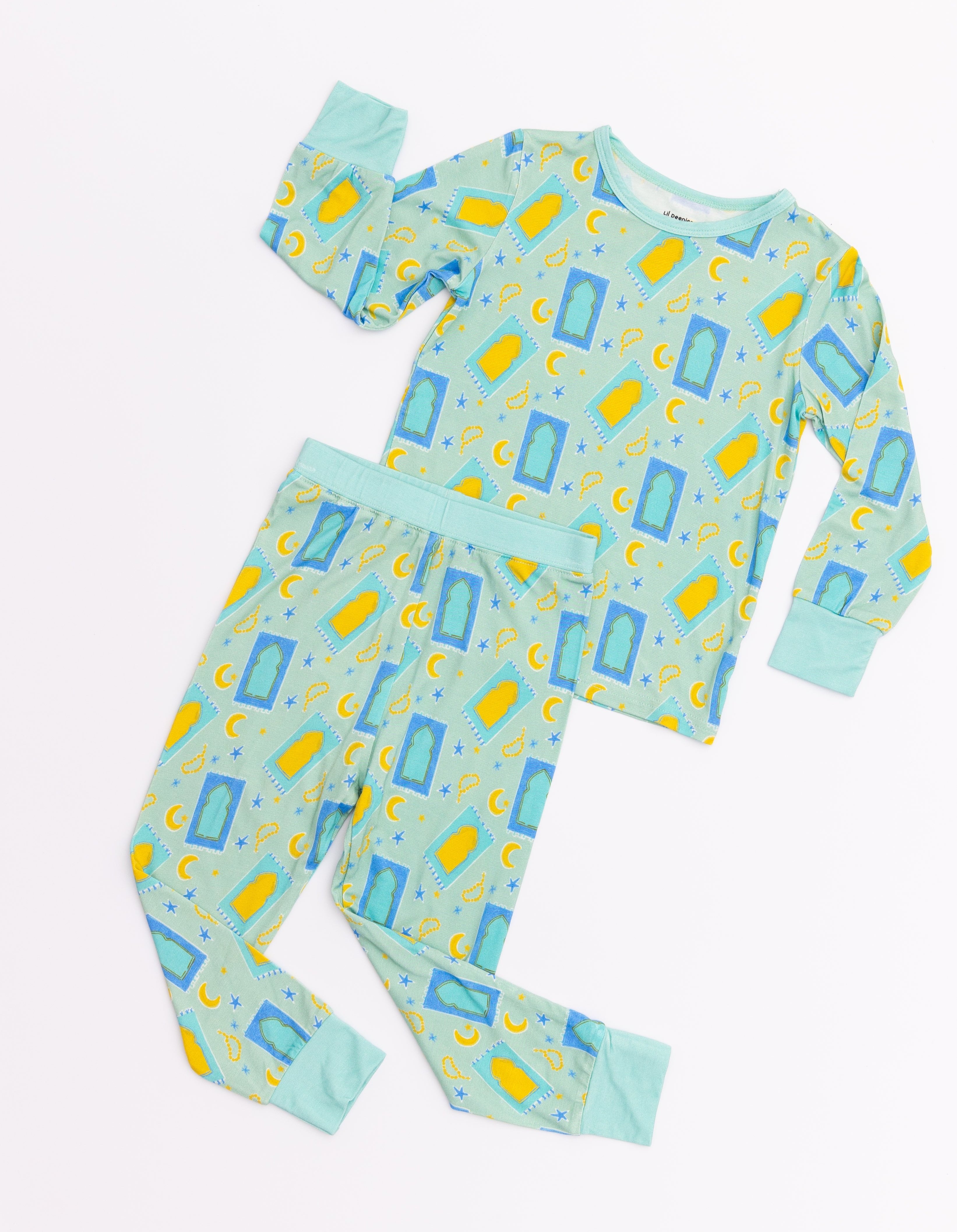 Wrap your toddler in warmth and fall coziness in this two piece pajama set for your lil boys! Make your child feel as warm and cozy with our Ramadan and Eid inspired prints!