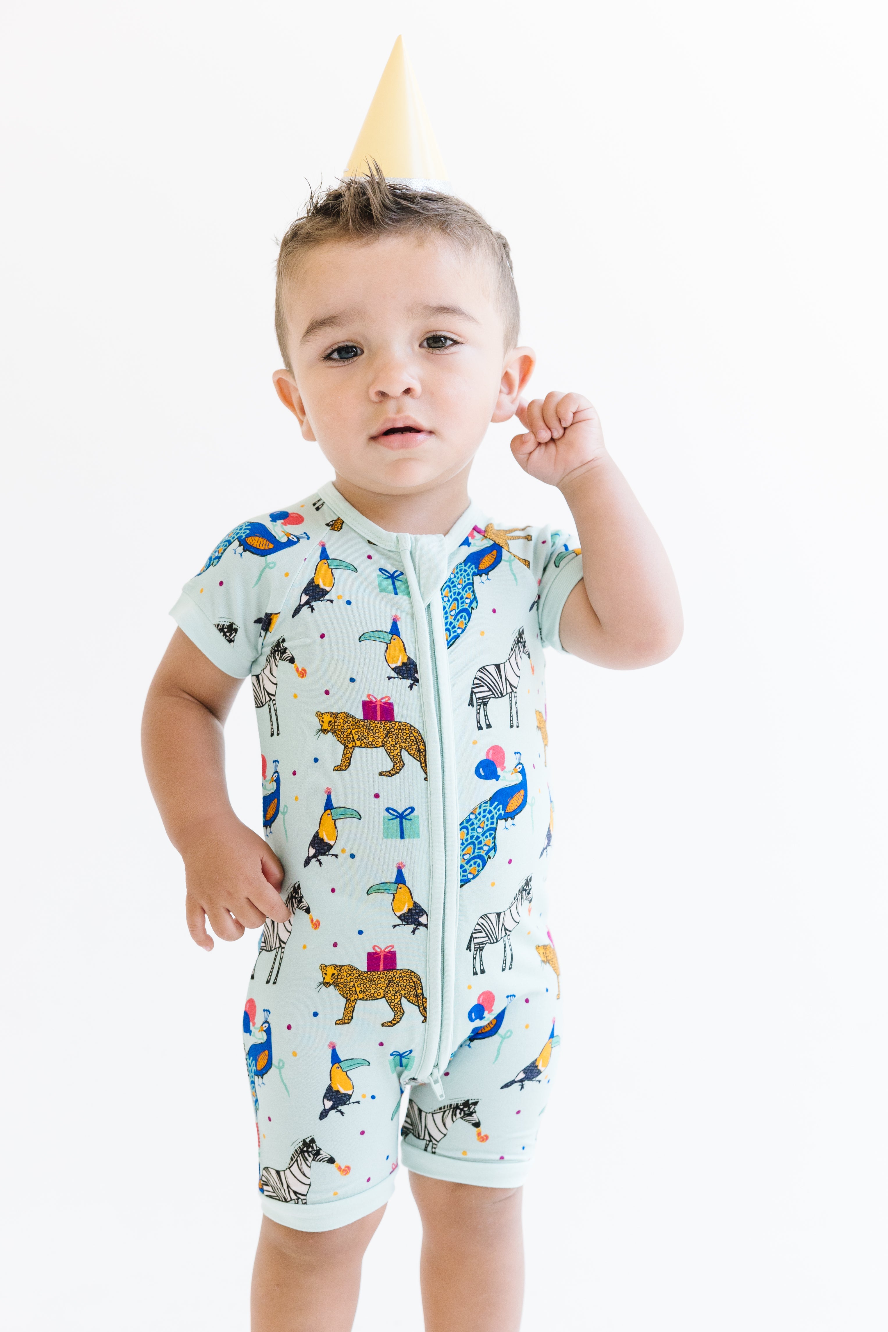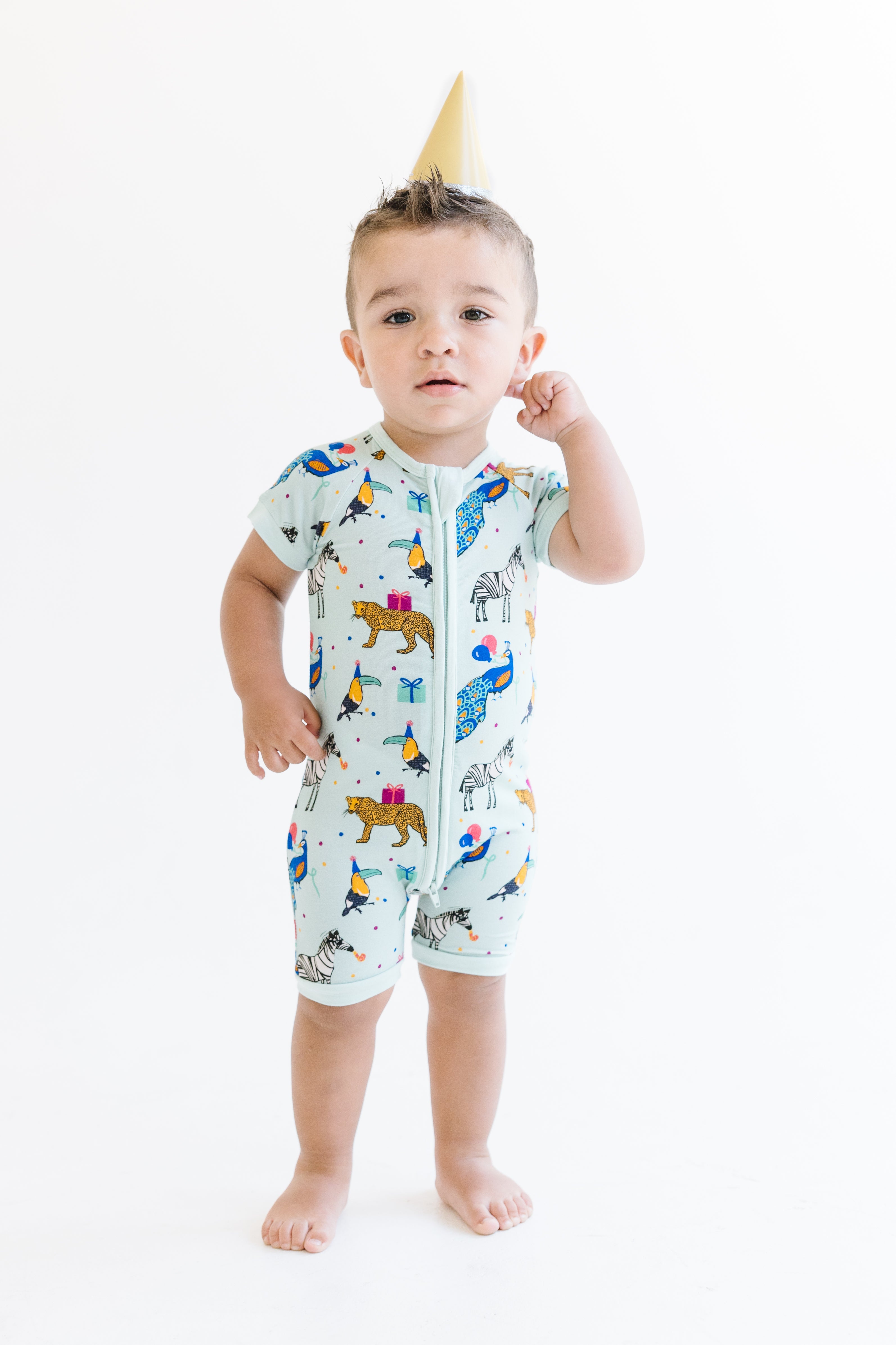 Get your mini explorer ready for a wild adventure in our Wild Party Animals Short Sleeve Short Pants Zippy! Made from premium bamboo fabric, this outfit offers unmatched softness and breathability for all-day comfort. The perfect blend of comfort and style for your little one.