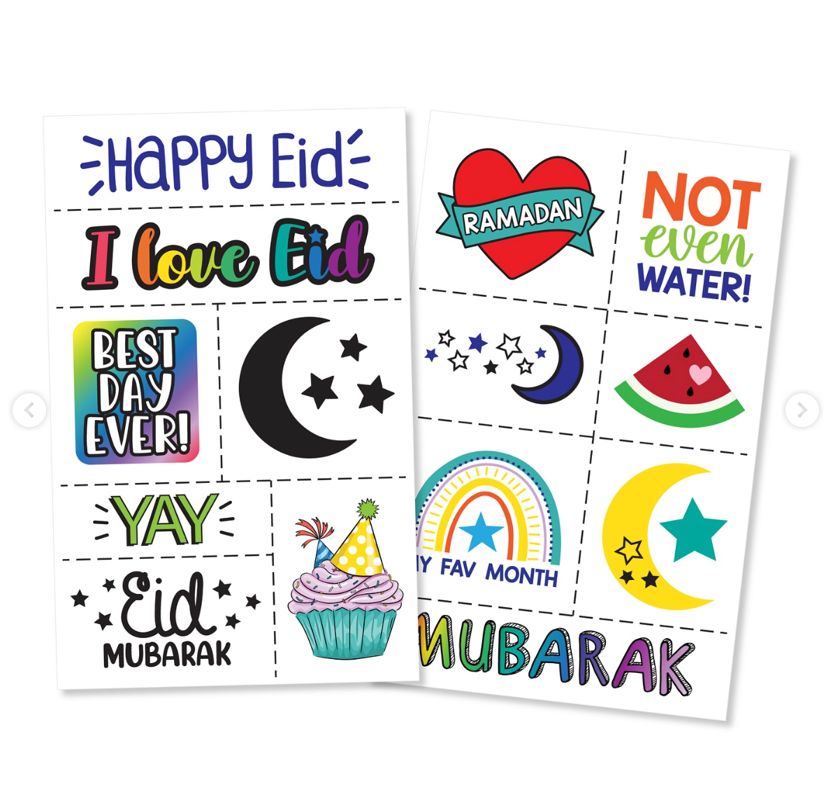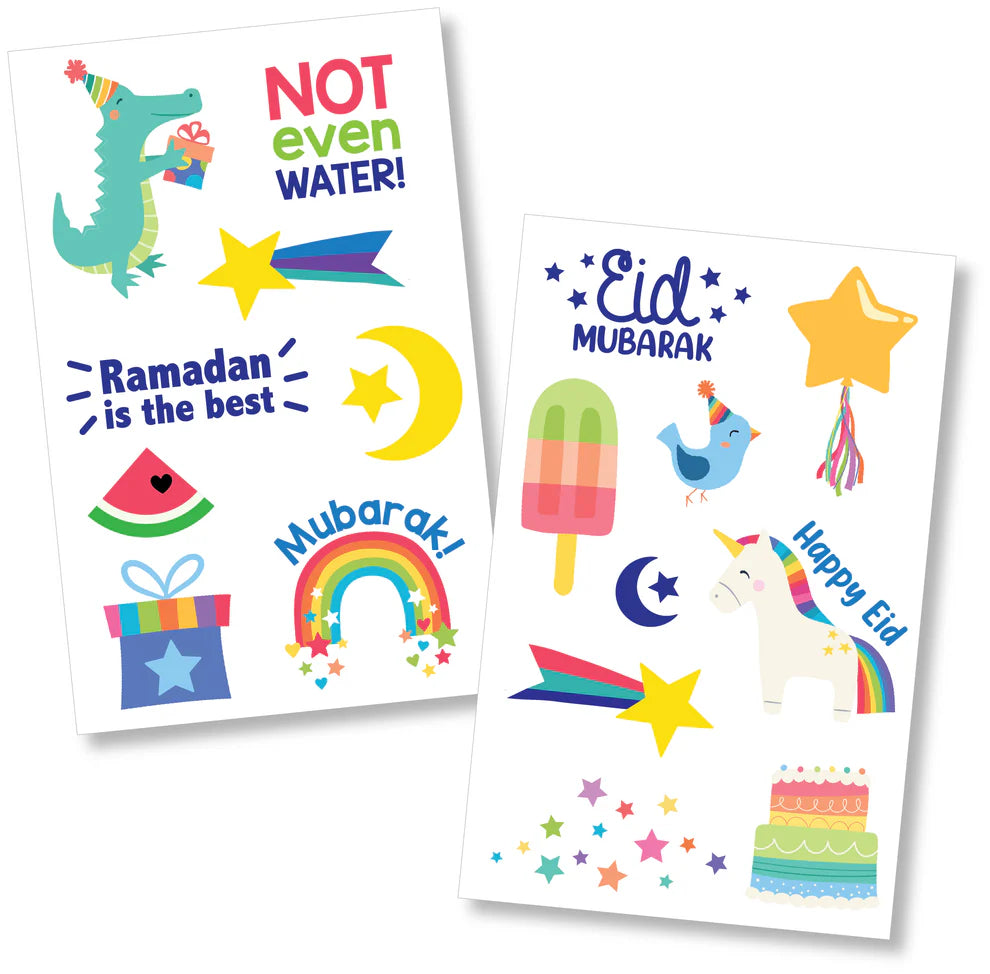 • Colorful and festive temporary tattoos for Ramadan and Eid! Tattoos last 2-3 days.  These tattoos are easy to apply and come with printed instructions on the back.  For best results, be sure to follow the instructions carefully.