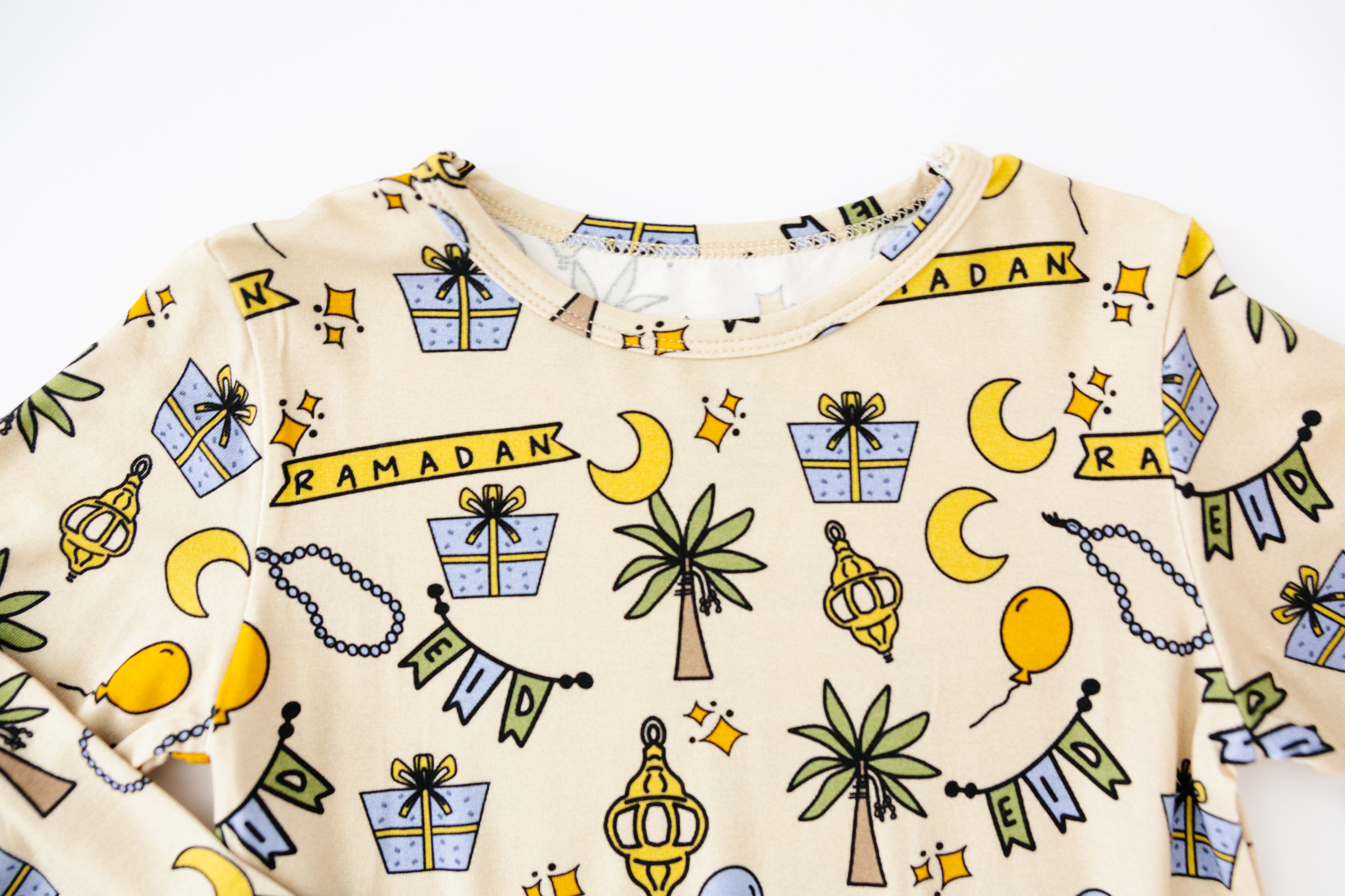 Make bedtime a joyful part of the Ramadan season with our Eid Mug Longsleeve Pajama Bamboo Set. Inspired by the festive spirit of Eid, this set pairs playful prints with the unmatched softness of bamboo fabric. It’s ideal for lounging, sleeping, or enjoying quiet family mornings during Ramadan.