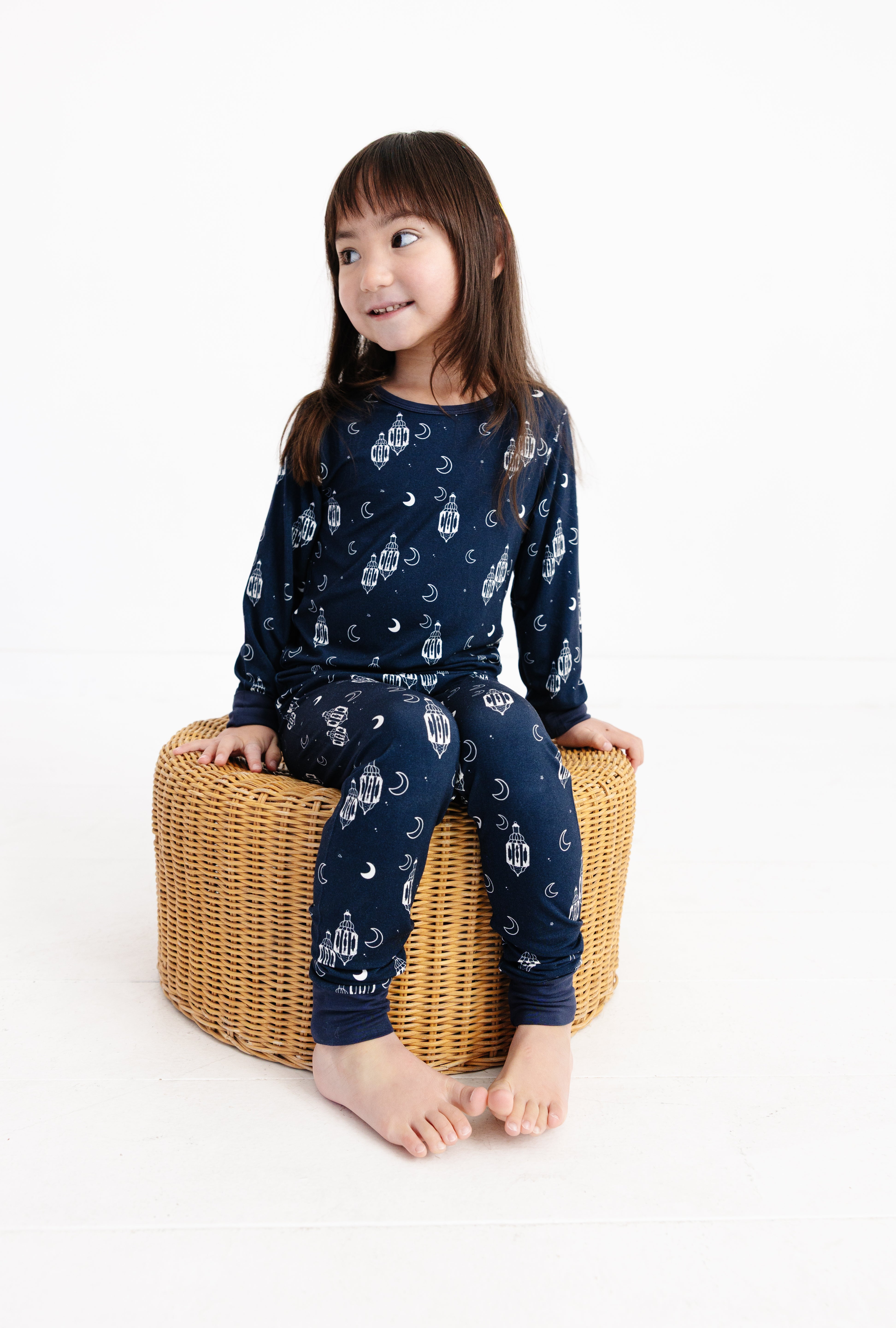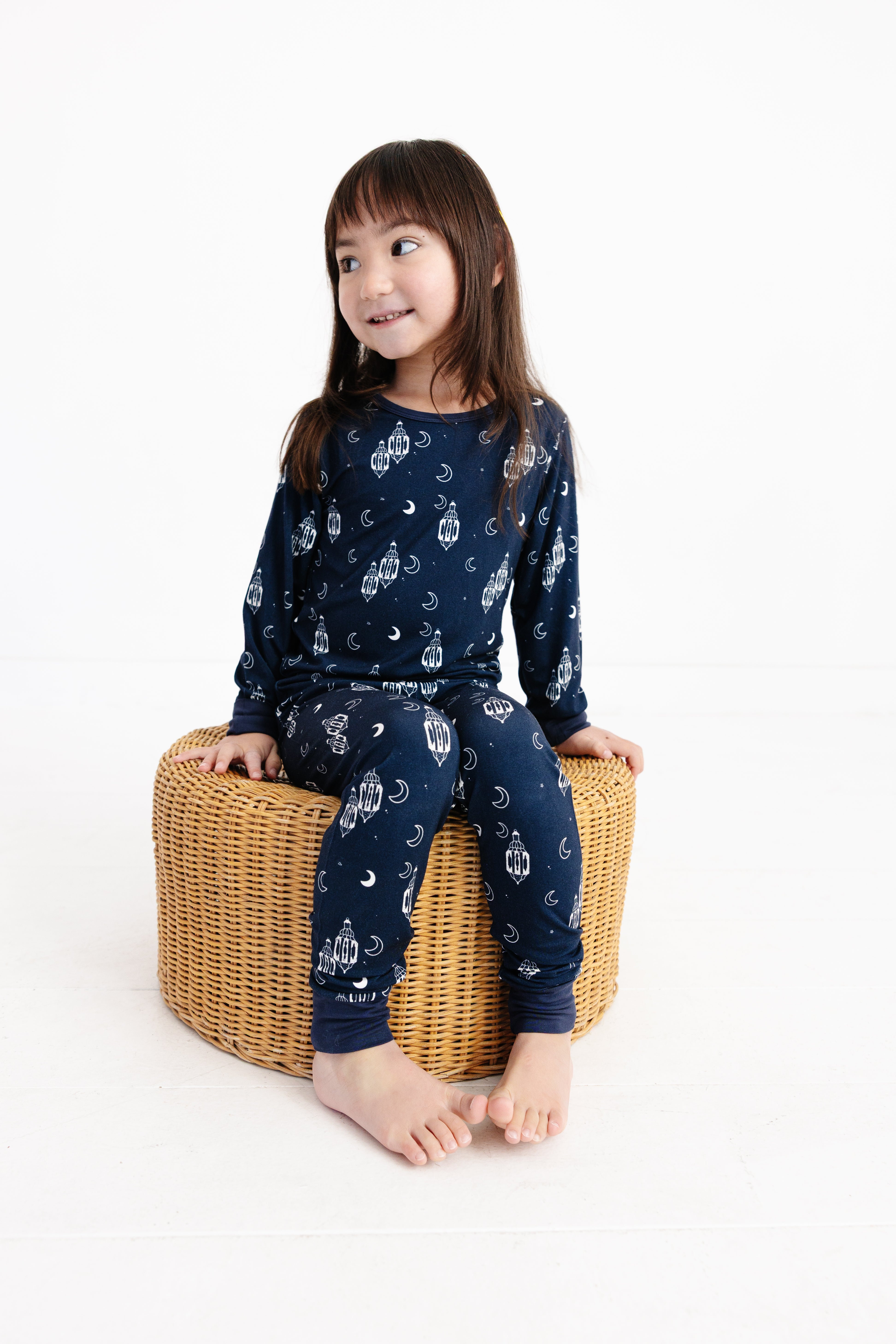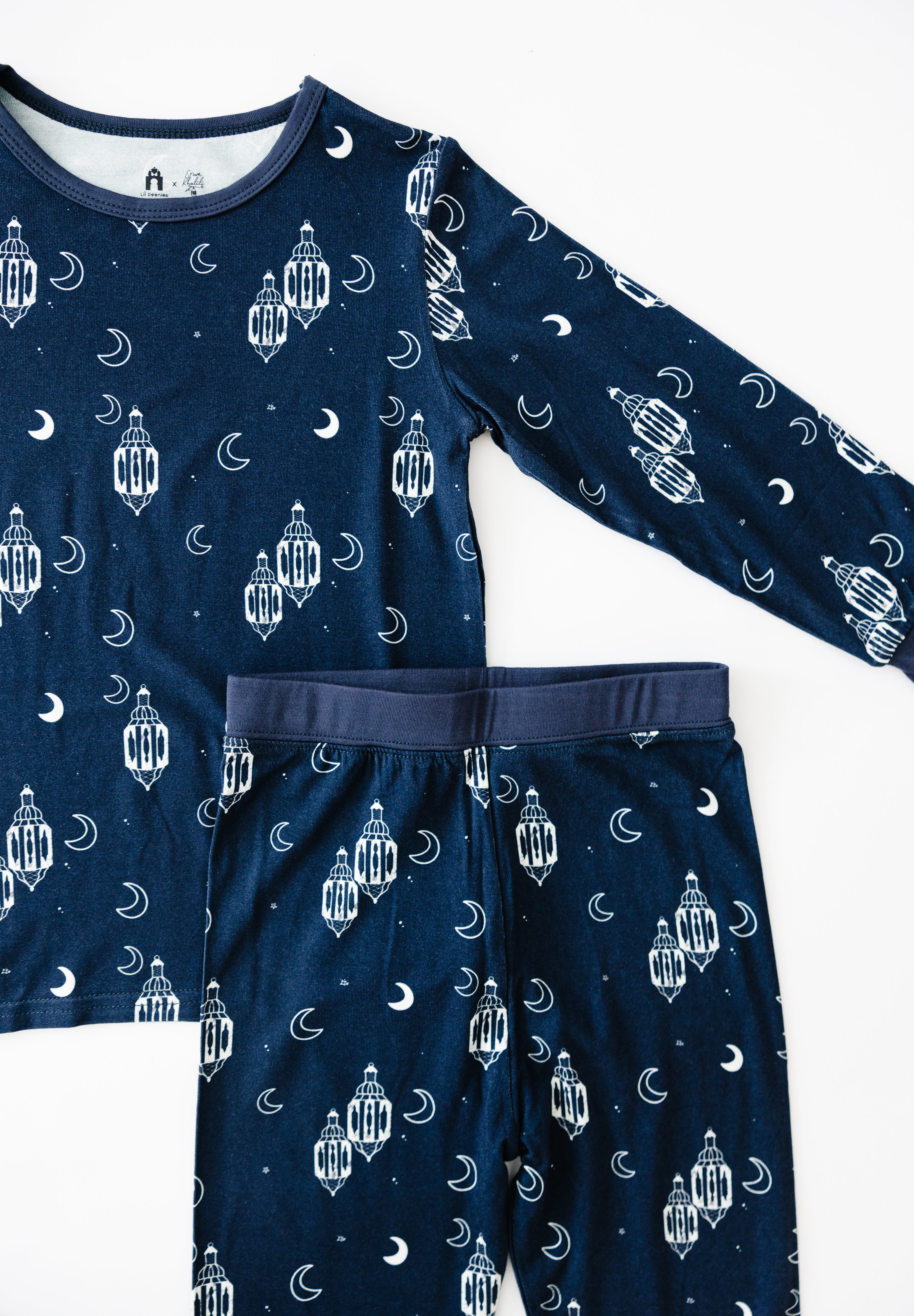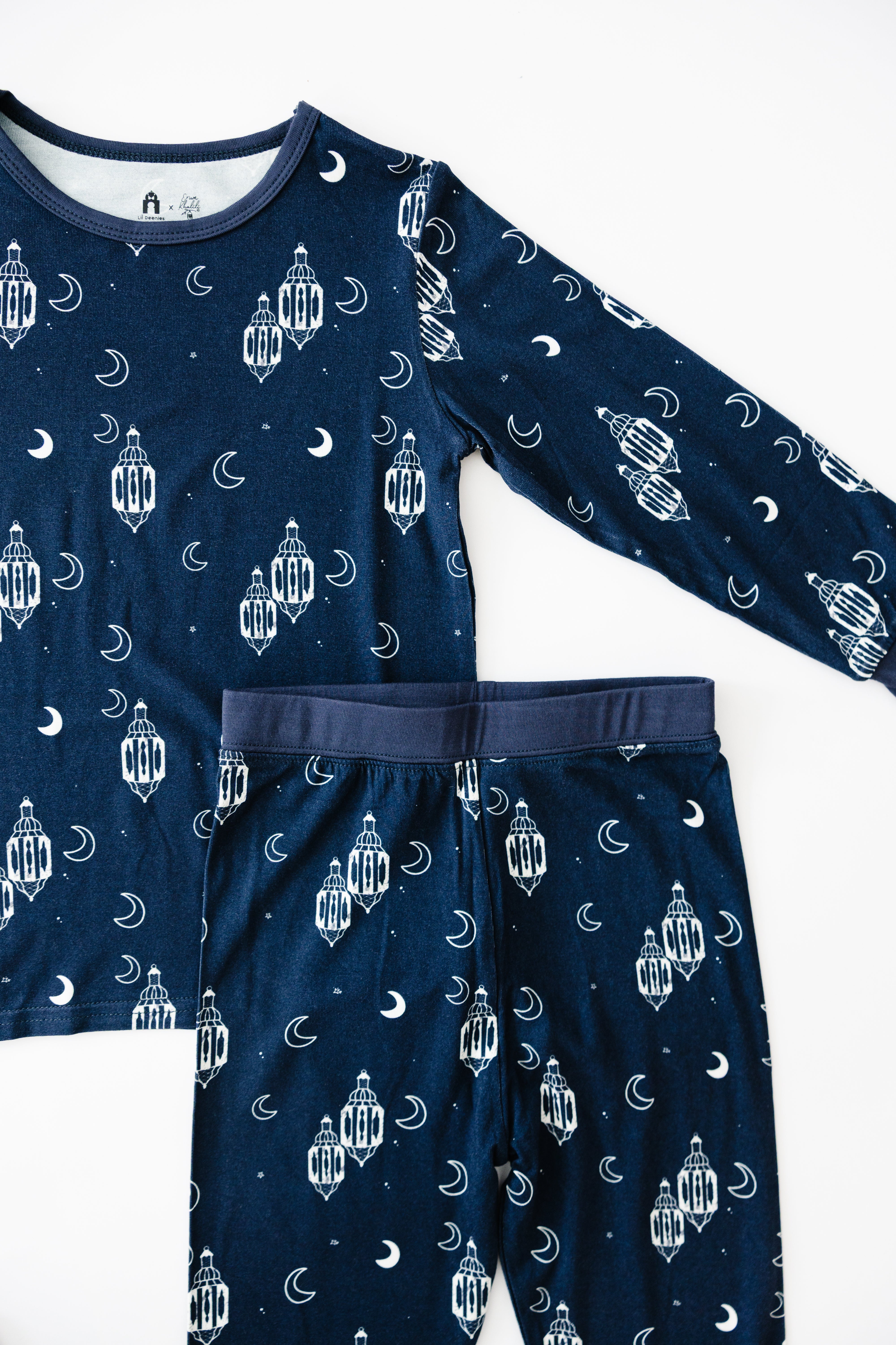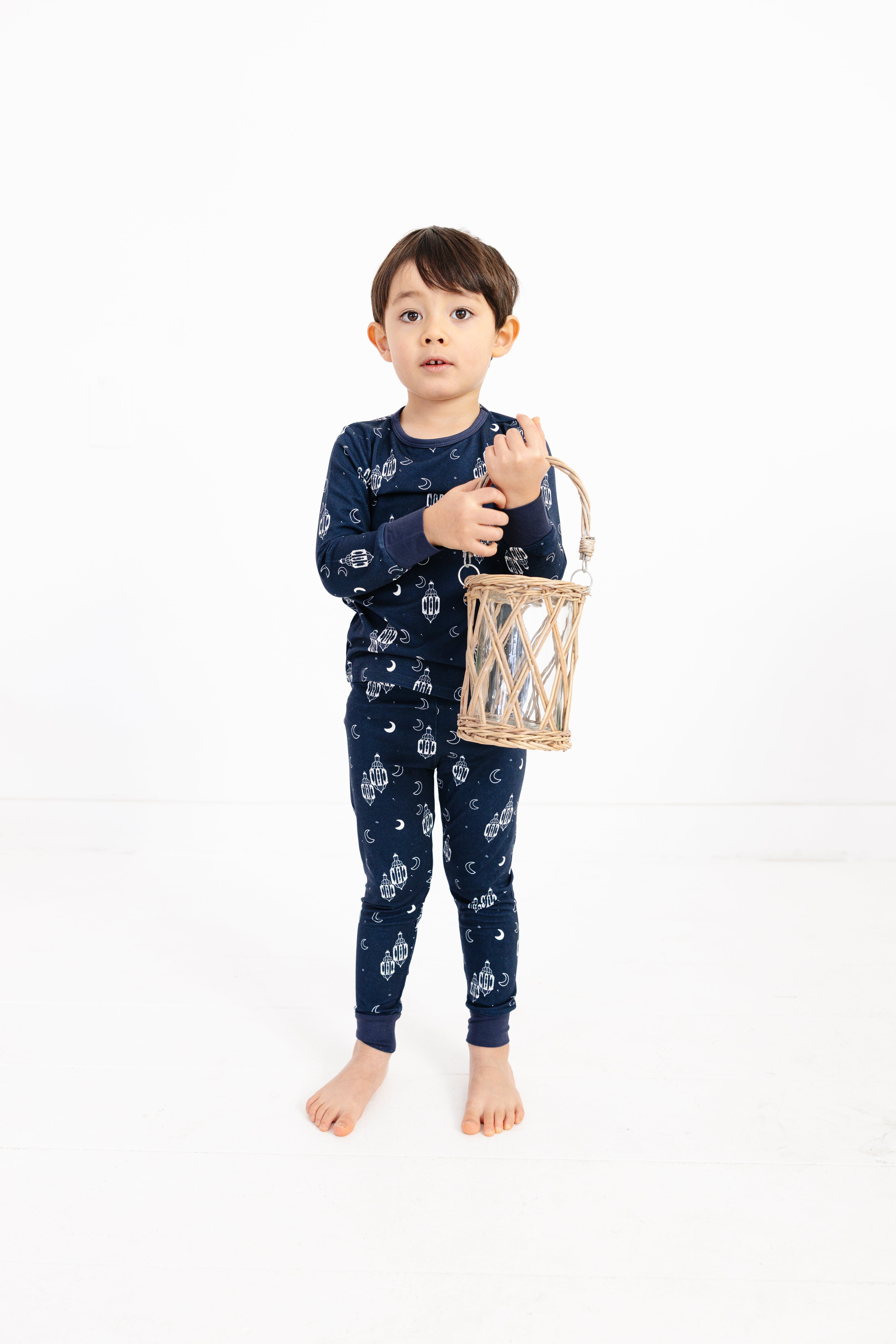 Celebrate Ramadan evenings in style with our Lantern Navy Longsleeve Pajama Bamboo Set. Featuring an elegant navy print inspired by festive lanterns, this set combines seasonal charm with cozy comfort for your little ones.