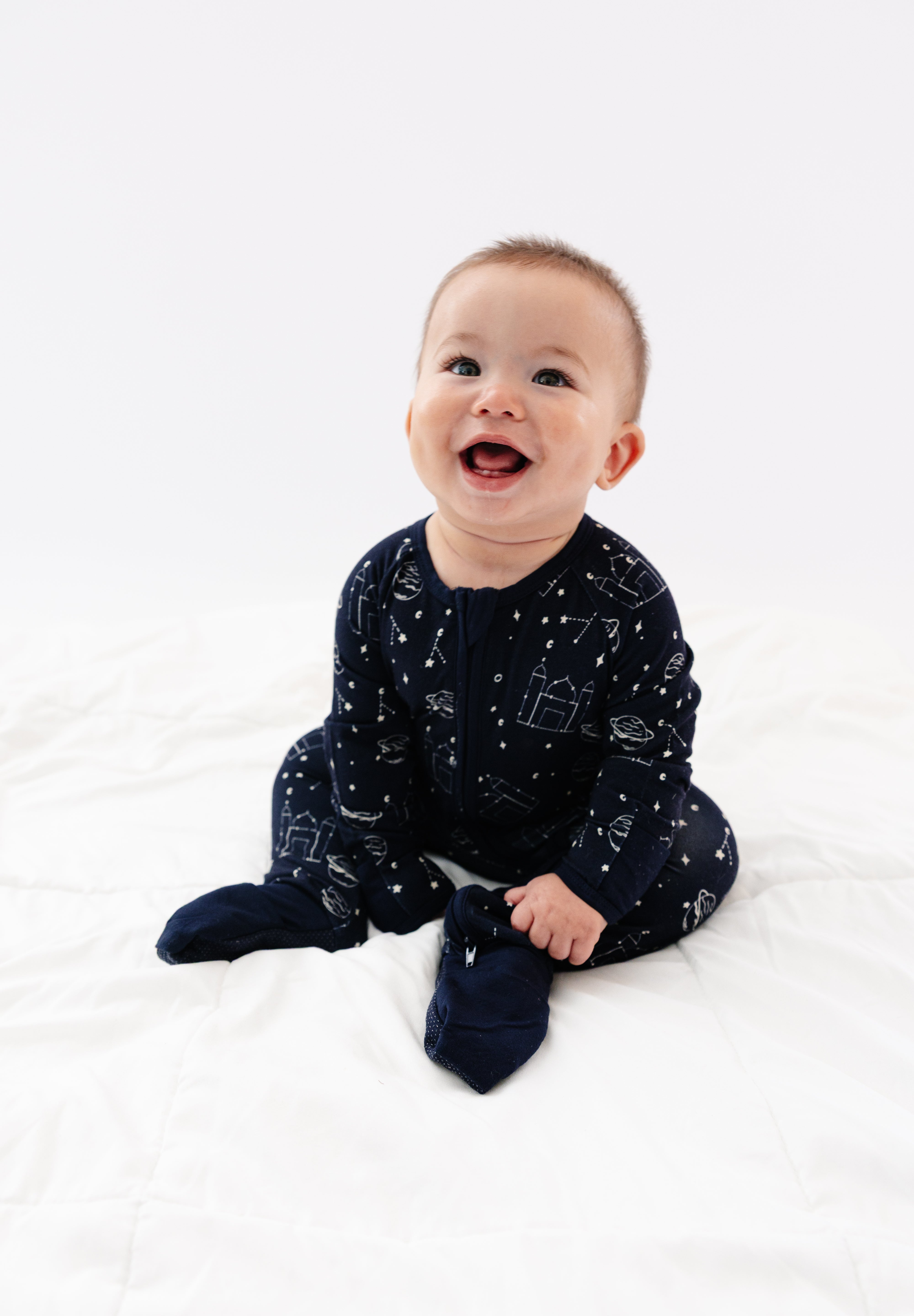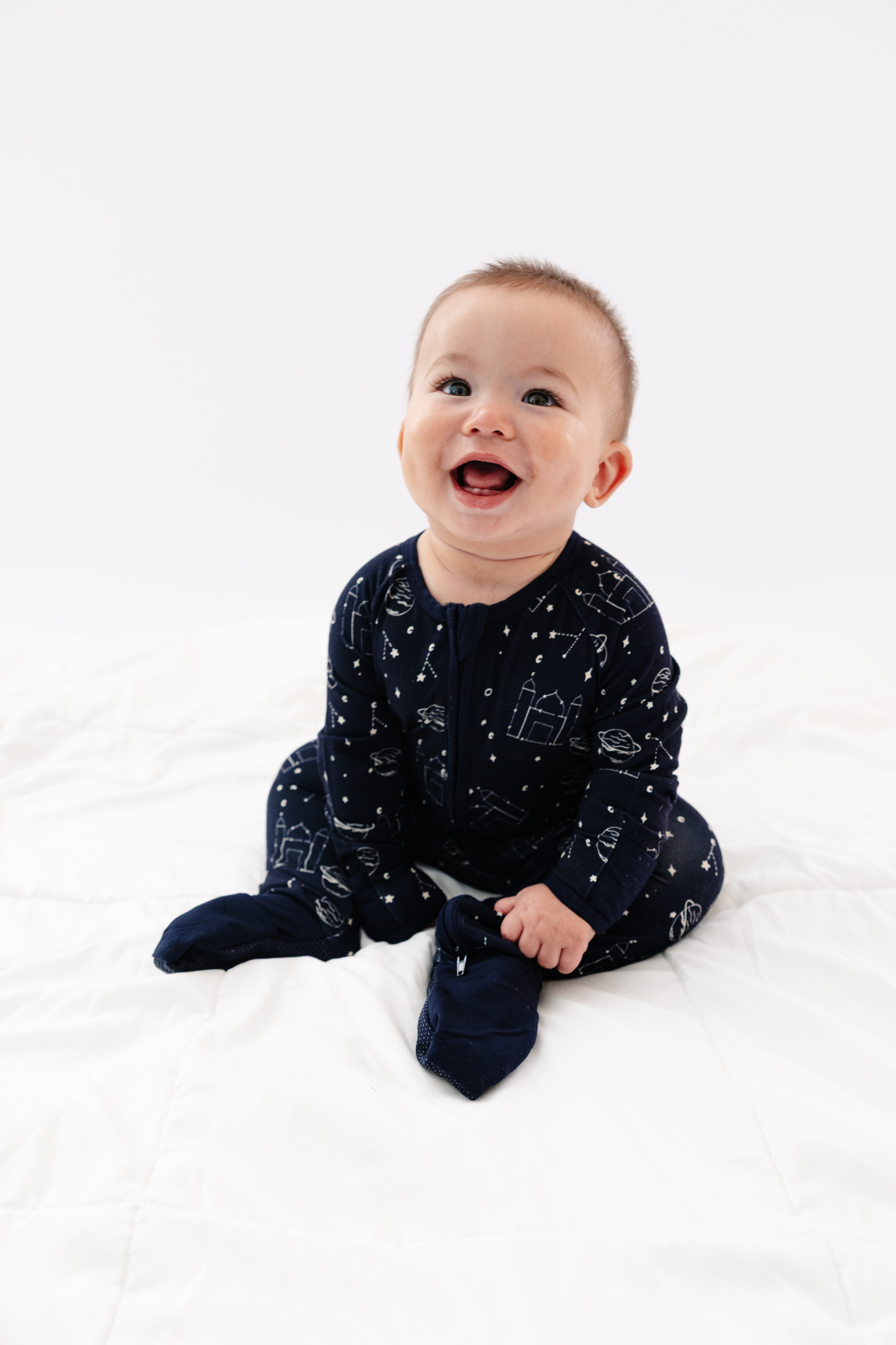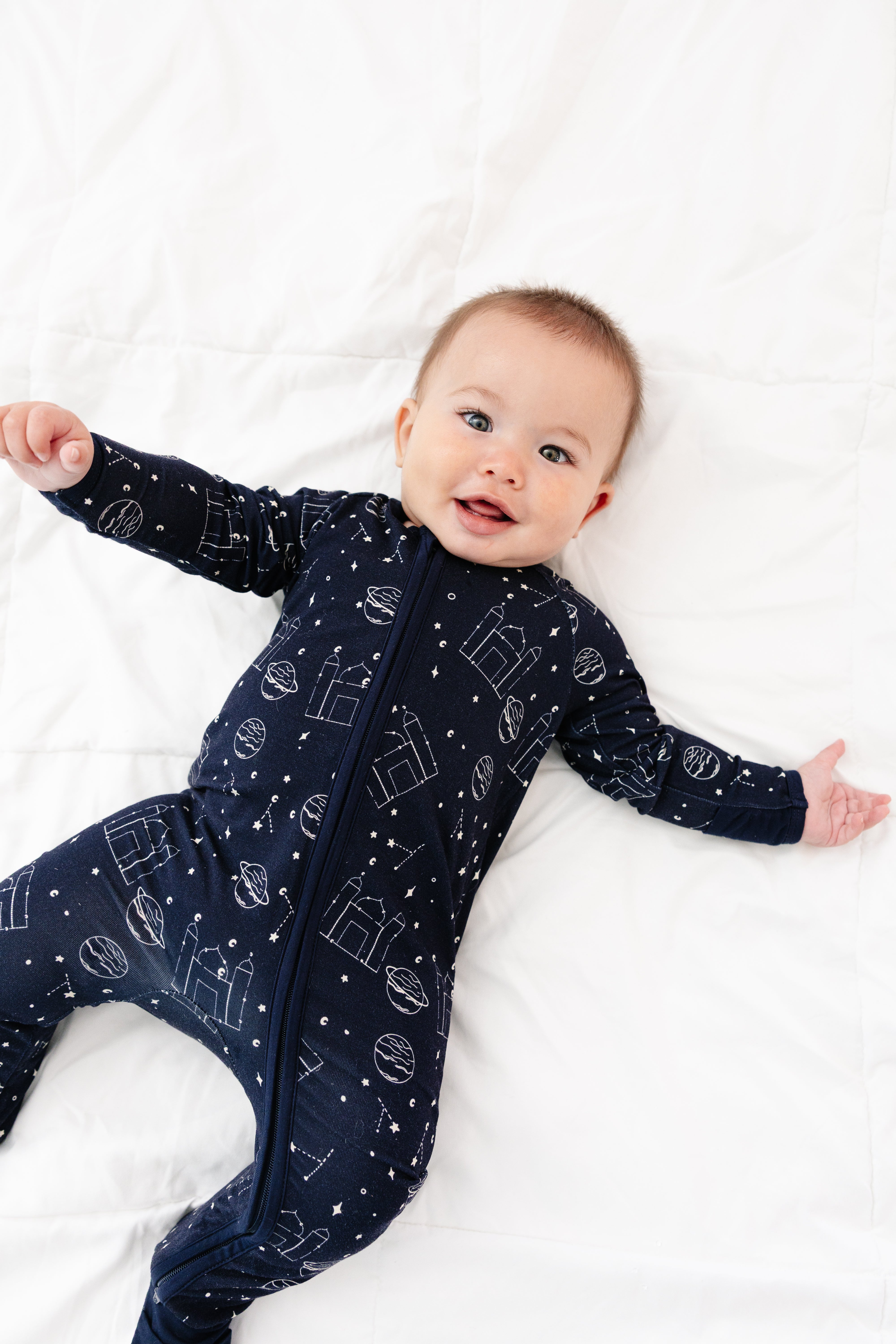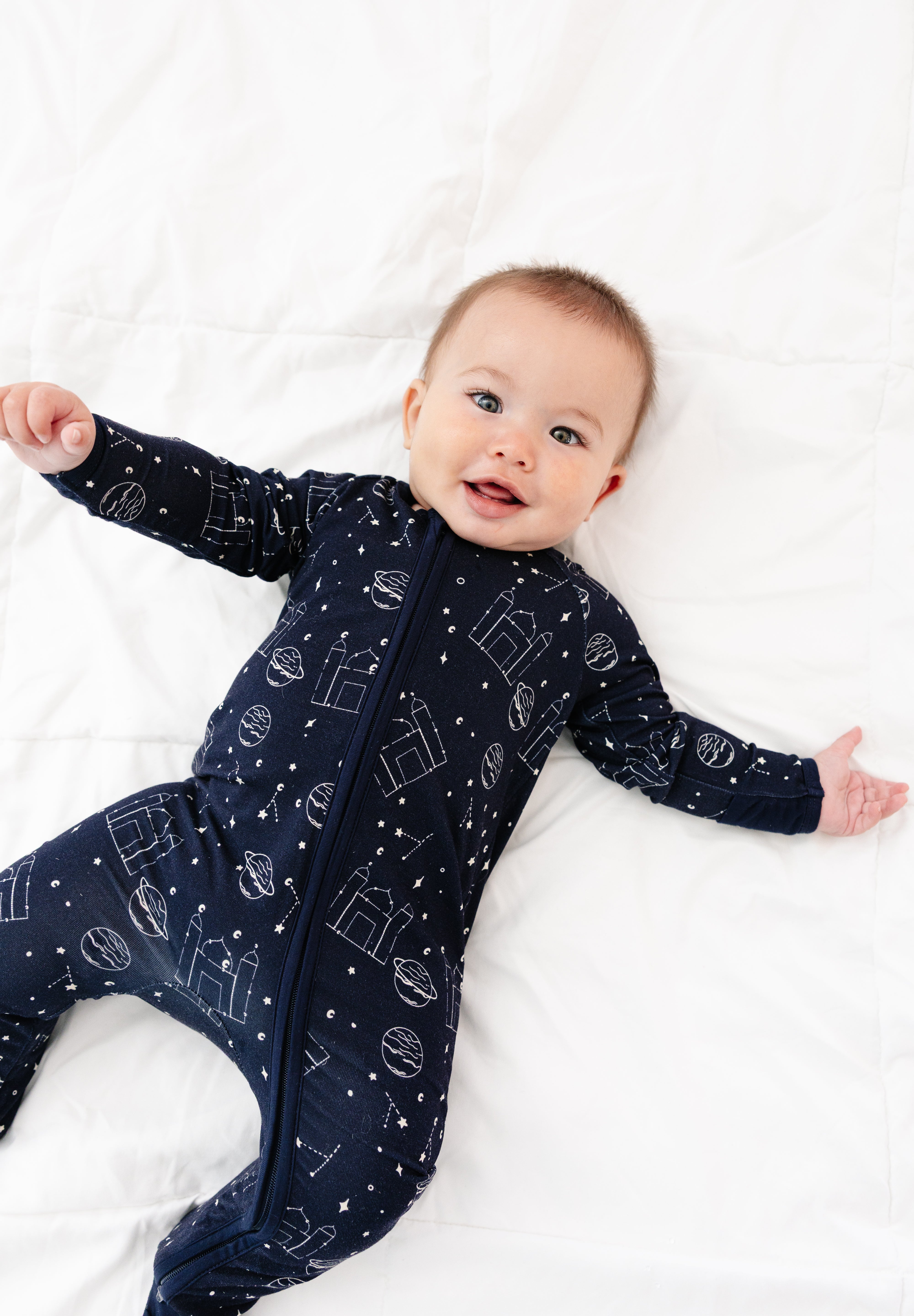 Made for little explorers and night-time dreamers, the Constellation Boys Zippy brings a playful celestial touch to bedtime. Featuring an all-over constellation print, this one-piece pajama is perfect for calm evenings, naps, and restful sleep during the Ramadan and Eid season.