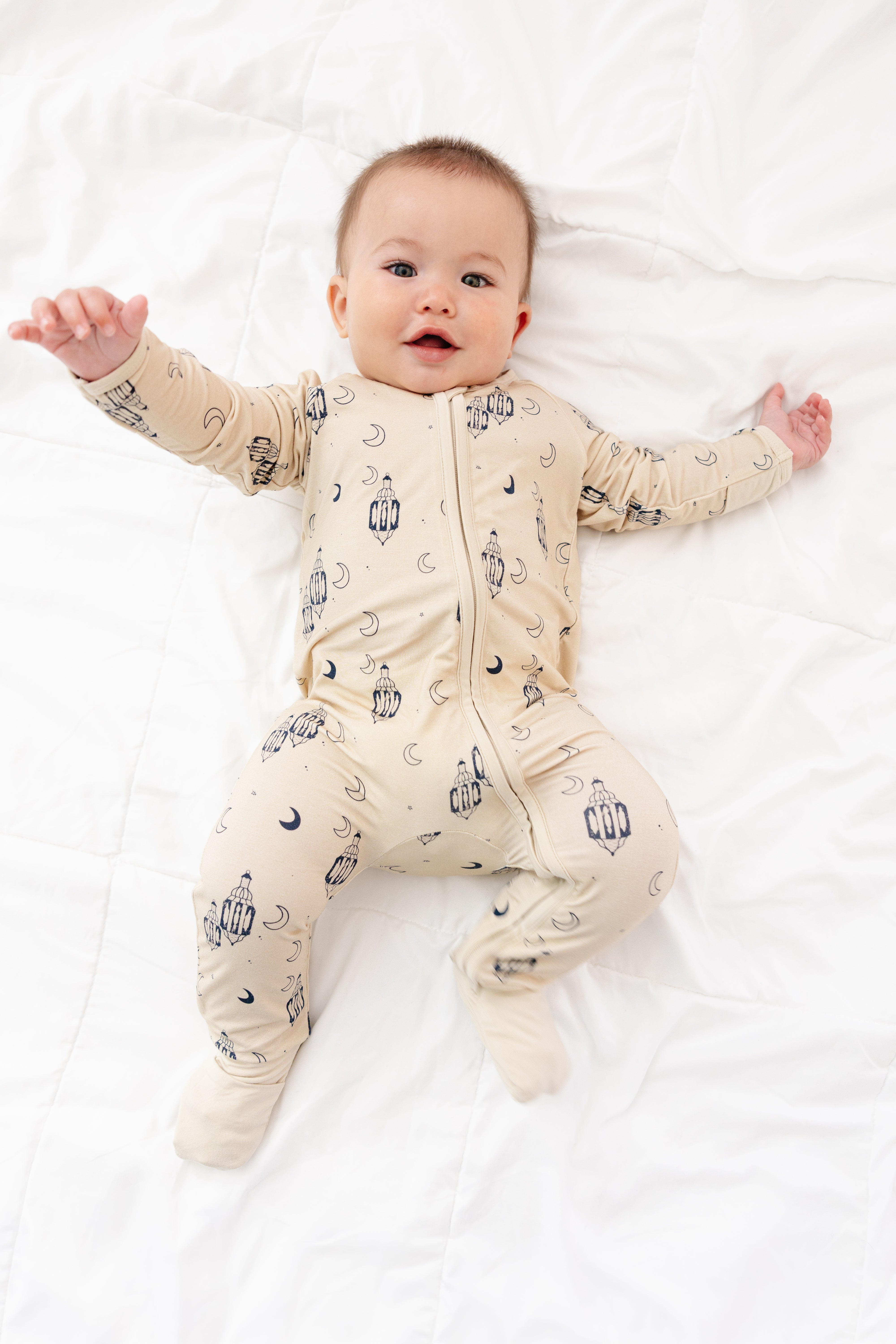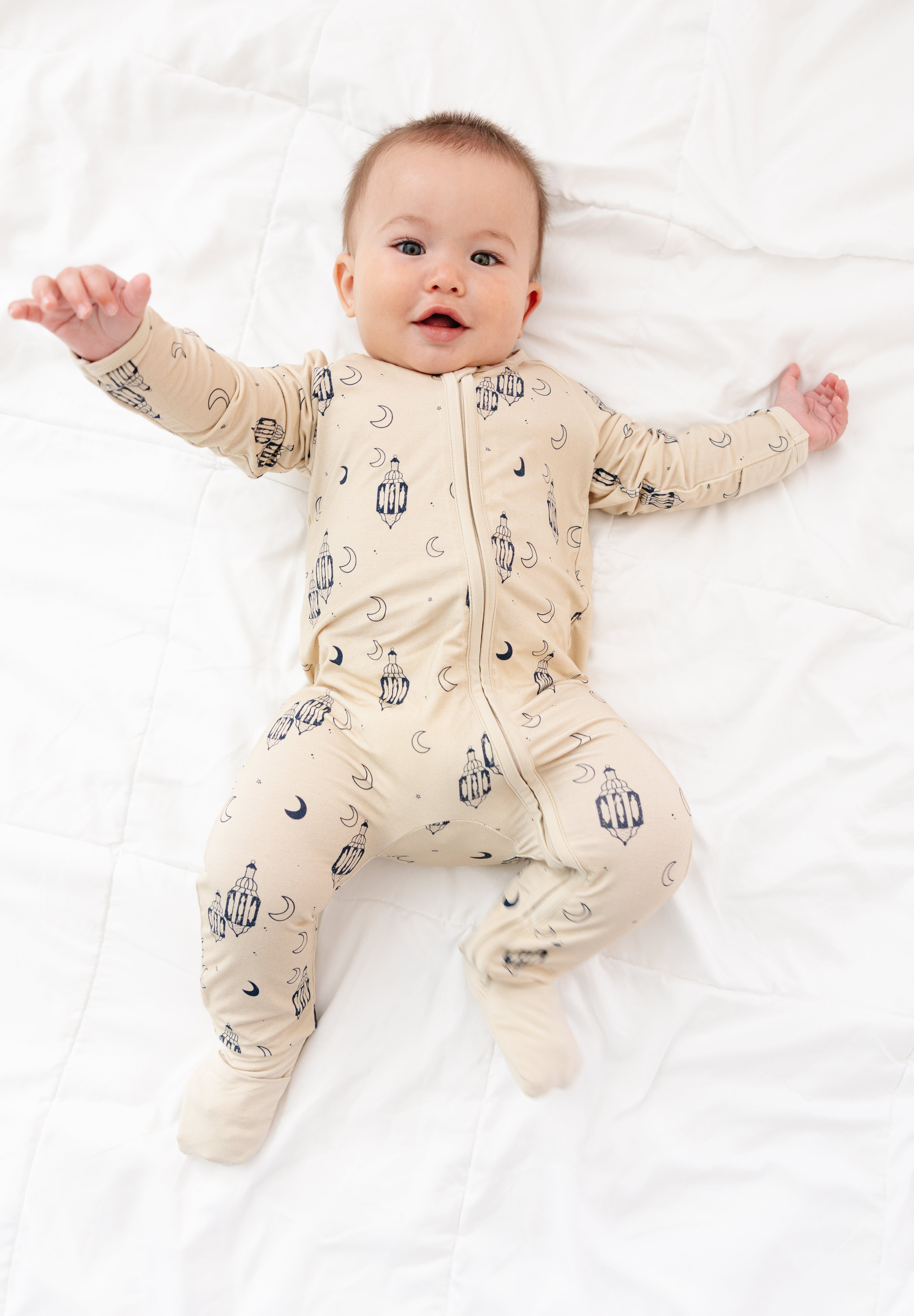 Soft, calm, and thoughtfully designed for the season, the Lantern Beige Zippy is perfect for babies during Ramadan and Eid. The warm beige tone paired with delicate lantern details creates a peaceful look that feels both festive and timeless.