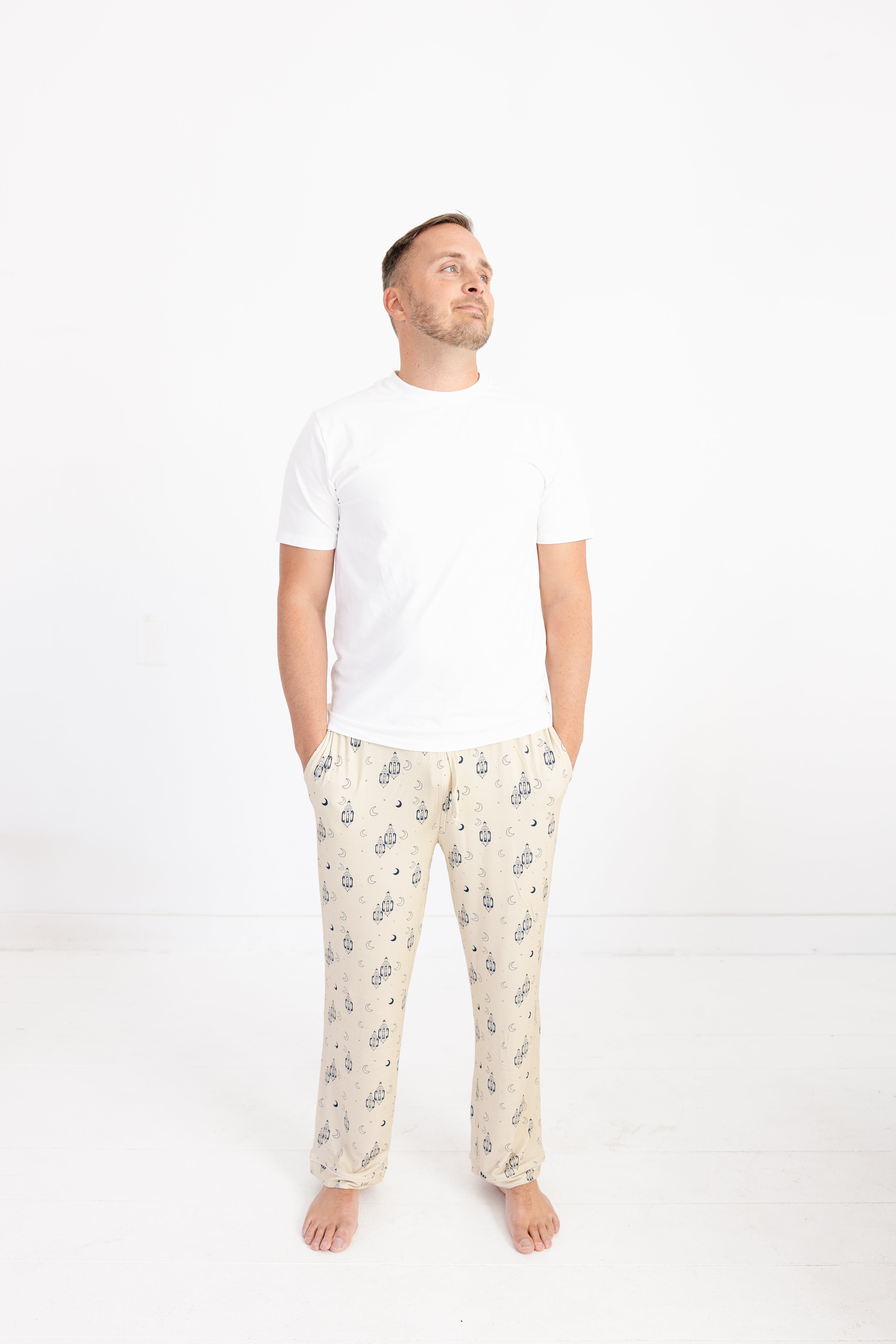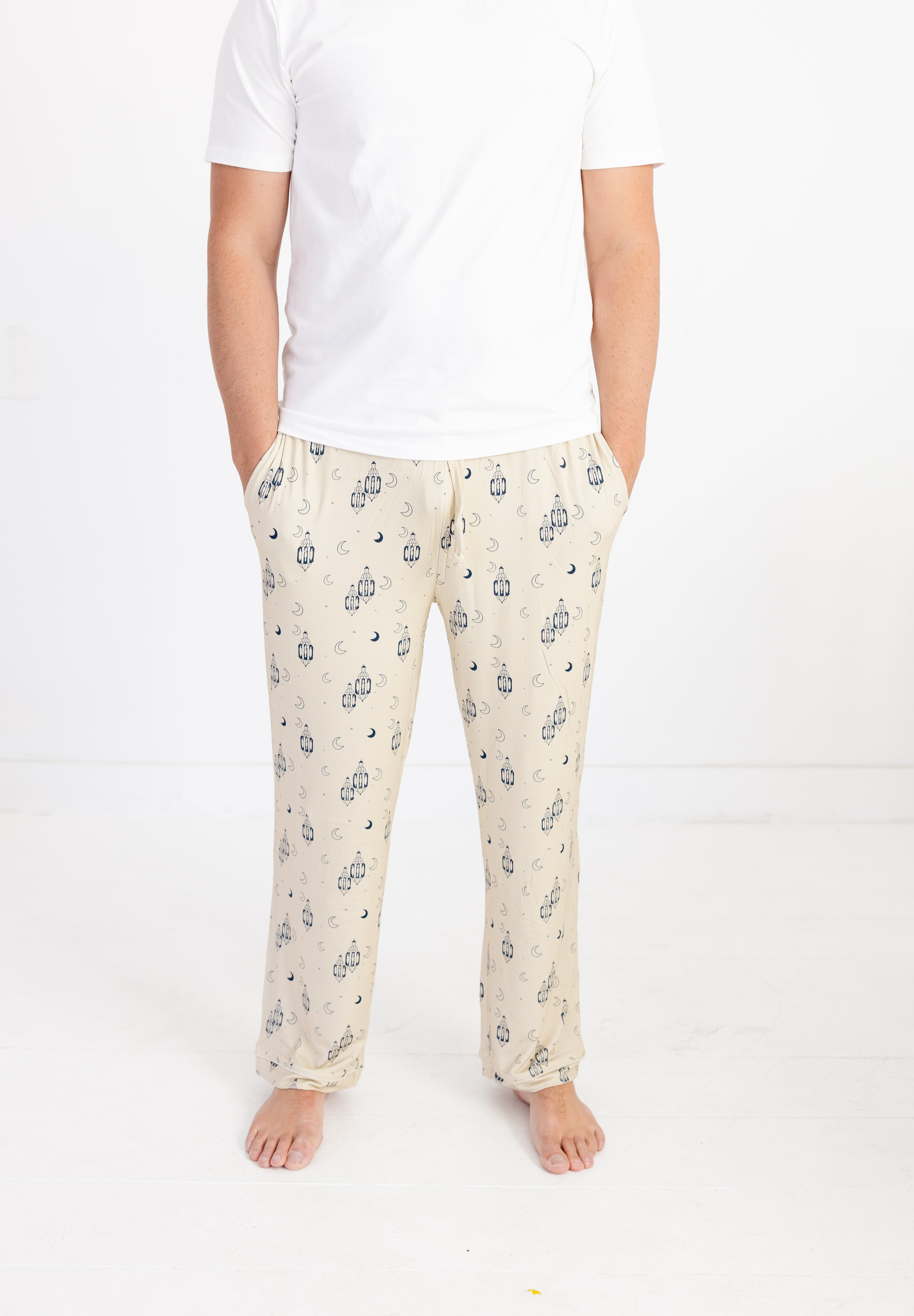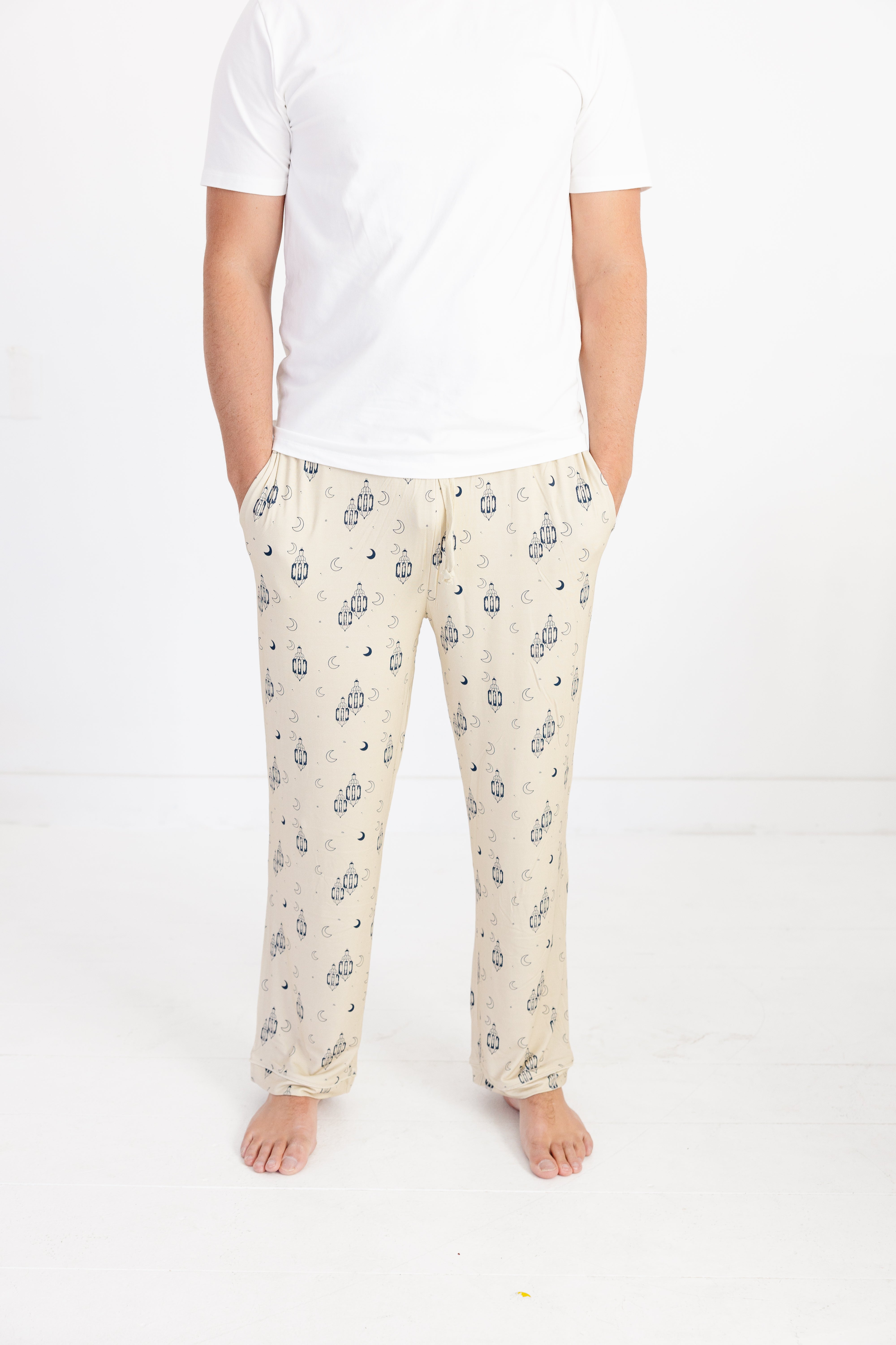 Soft neutrals meet festive detail in the Men’s Pajama Pants – Lantern Beige. Inspired by the quiet warmth of Ramadan evenings, this design brings a subtle seasonal touch without feeling loud or busy. Ideal for winding down after a long day or enjoying peaceful mornings at home.