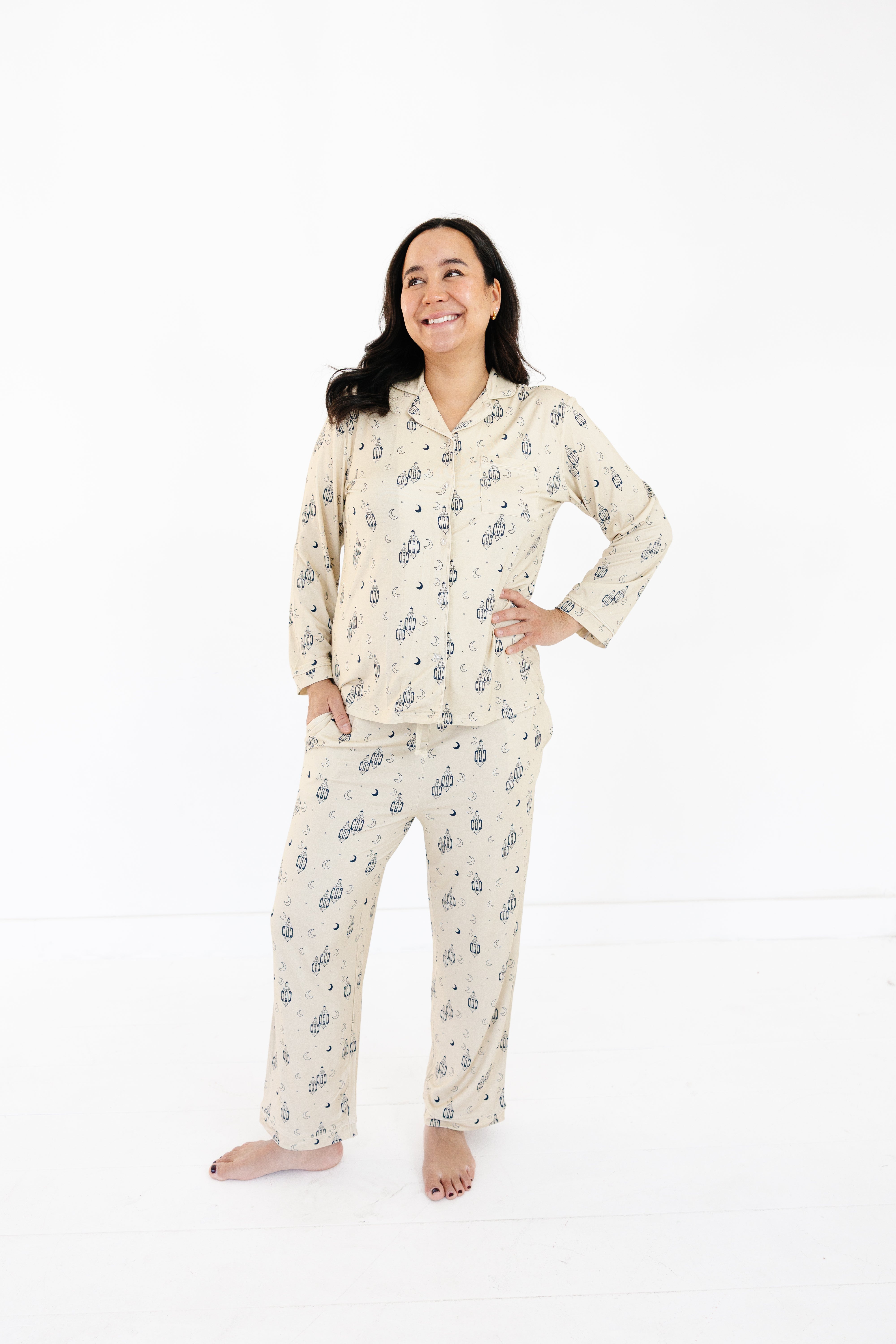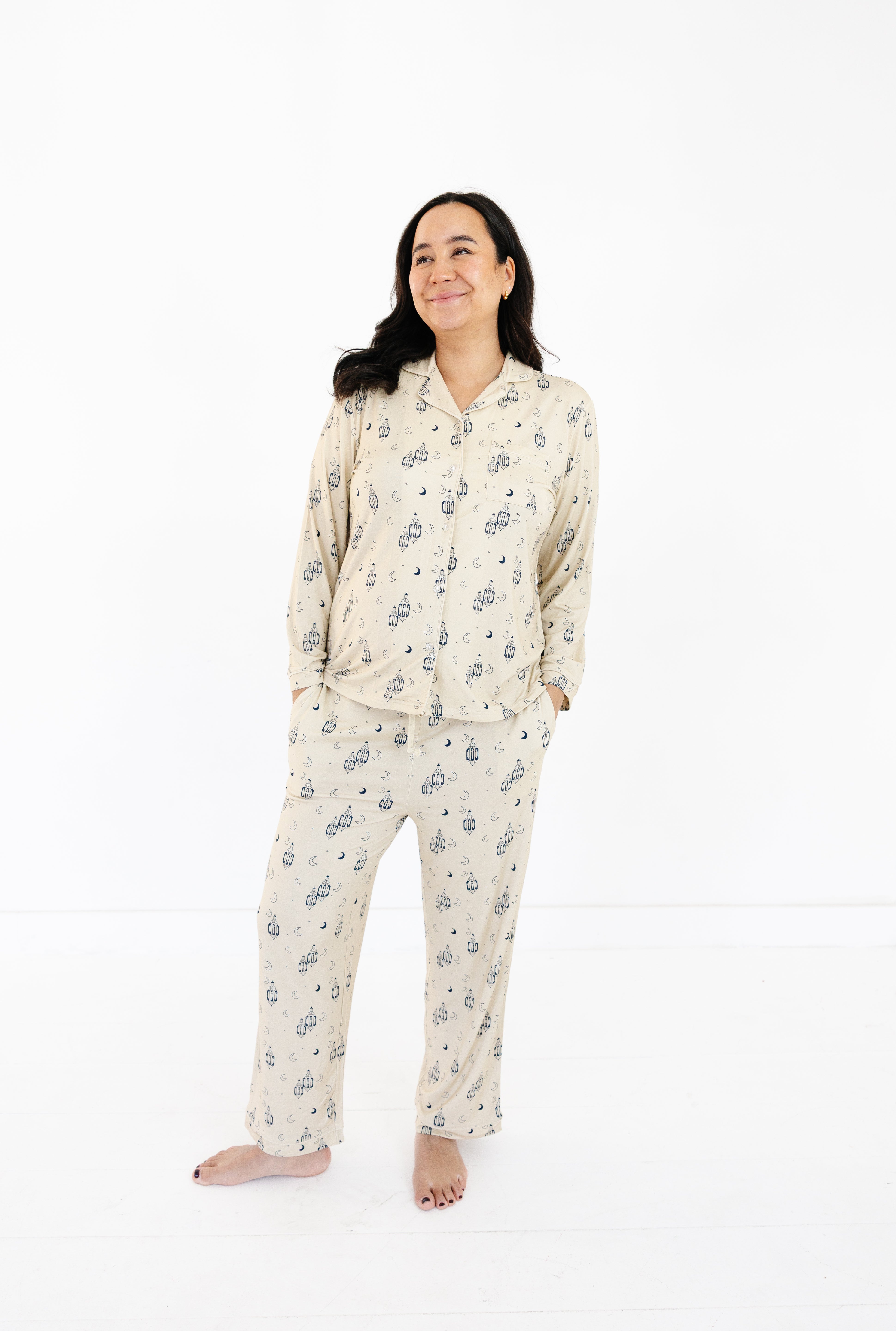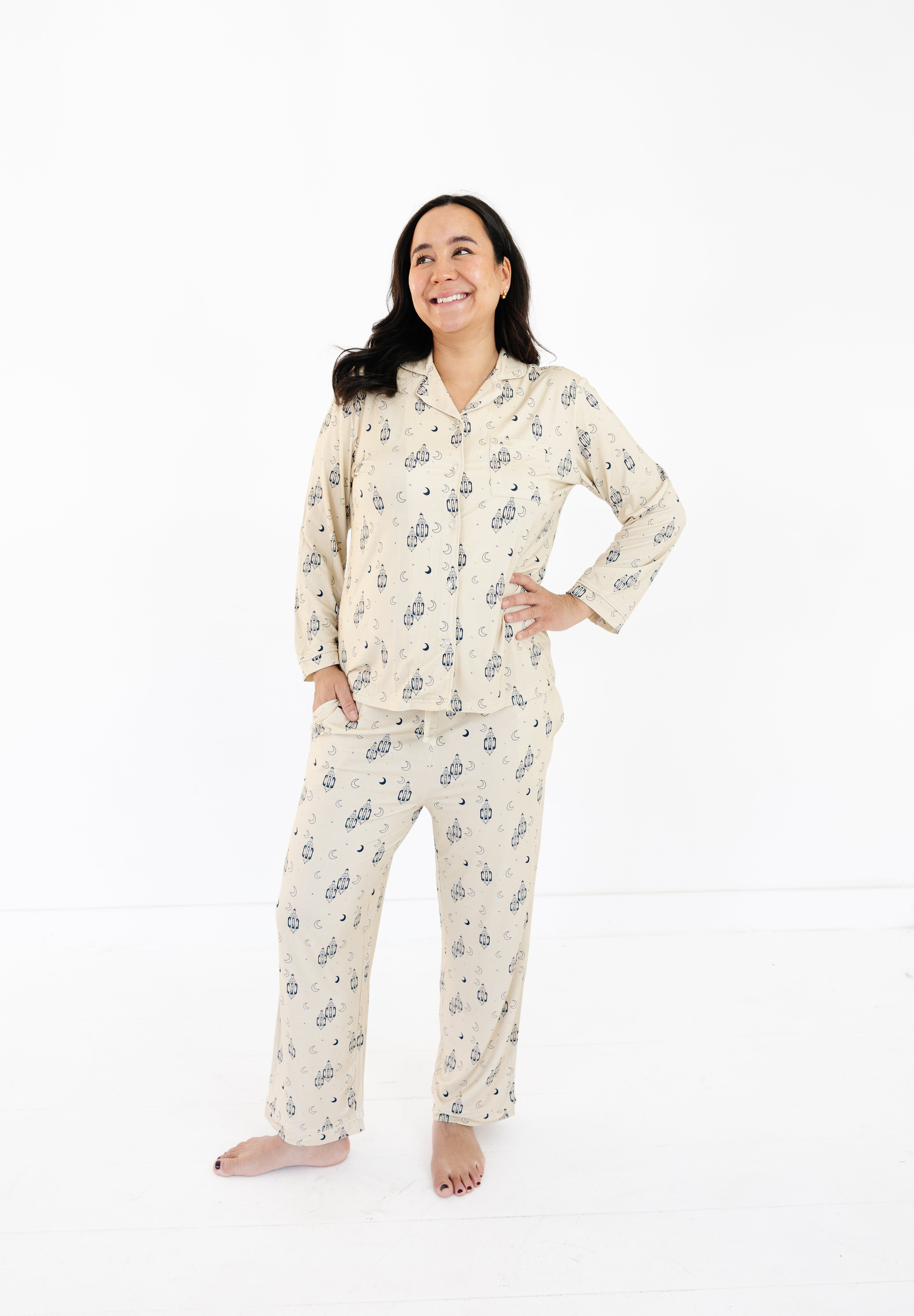 Women's Two-Piece Pajama Set - Lantern Dreams - Beige
