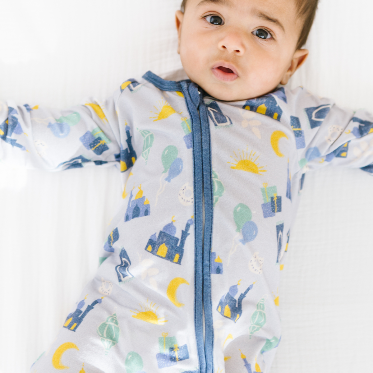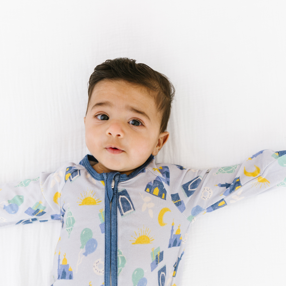 Embrace bedtime with our adorable boys' pajamas featuring cute prints of mosques and moons in blue. The easy-zip design ensures a hassle-free bedtime routine for parents, while the soft bamboo fabric keeps little ones cozy and comfortable.